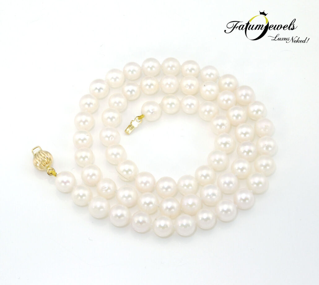 Az egyesével kézzel csomózott 62 Akoya gyöngy valódi eleganciát hordoz magában. A sárga arany kapocs még tradicionálisabbá teszi az ékszert. Ennek ellenére fiataloknak is bátran ajánljuk a viselését, mivel a fehér gyöngysor éppen olyan ékszer, mely soha nem megy ki a divatból. A Fatumjewels Galéria kínálatában fellelhető sok egyéb gyöngy ékszer mellett.