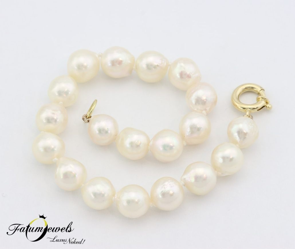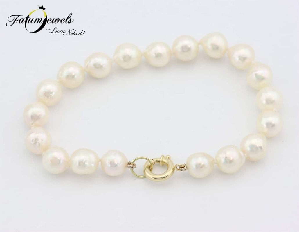 Tökéletes gömb alakú sósvízi gyöngyökből álló gyöngy karkötő meglepően kedvező áron a Fatumjewels Galéria tervezésében. Kedveled a fehéret, de a hófehér túl rideg számodra? Ez a lágyan fehér gyöngy karkötő sárga arany kapoccsal éppen neked készült. Az ára meglehetősen kedvező. Minden alkalomra kitűnő kiegészítőként szolgál.