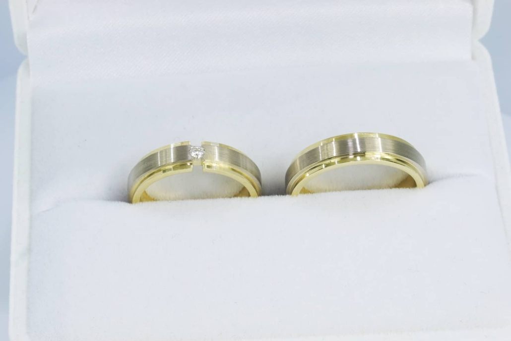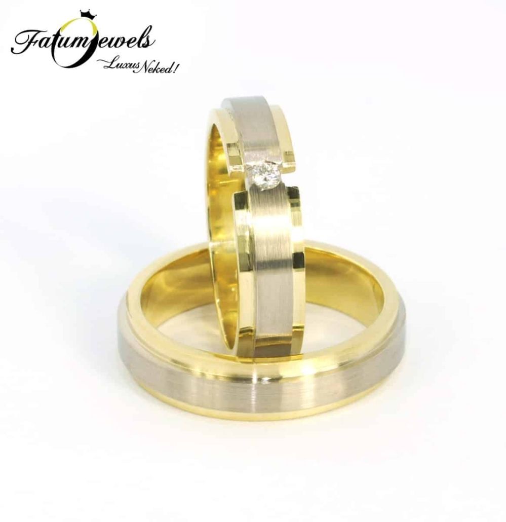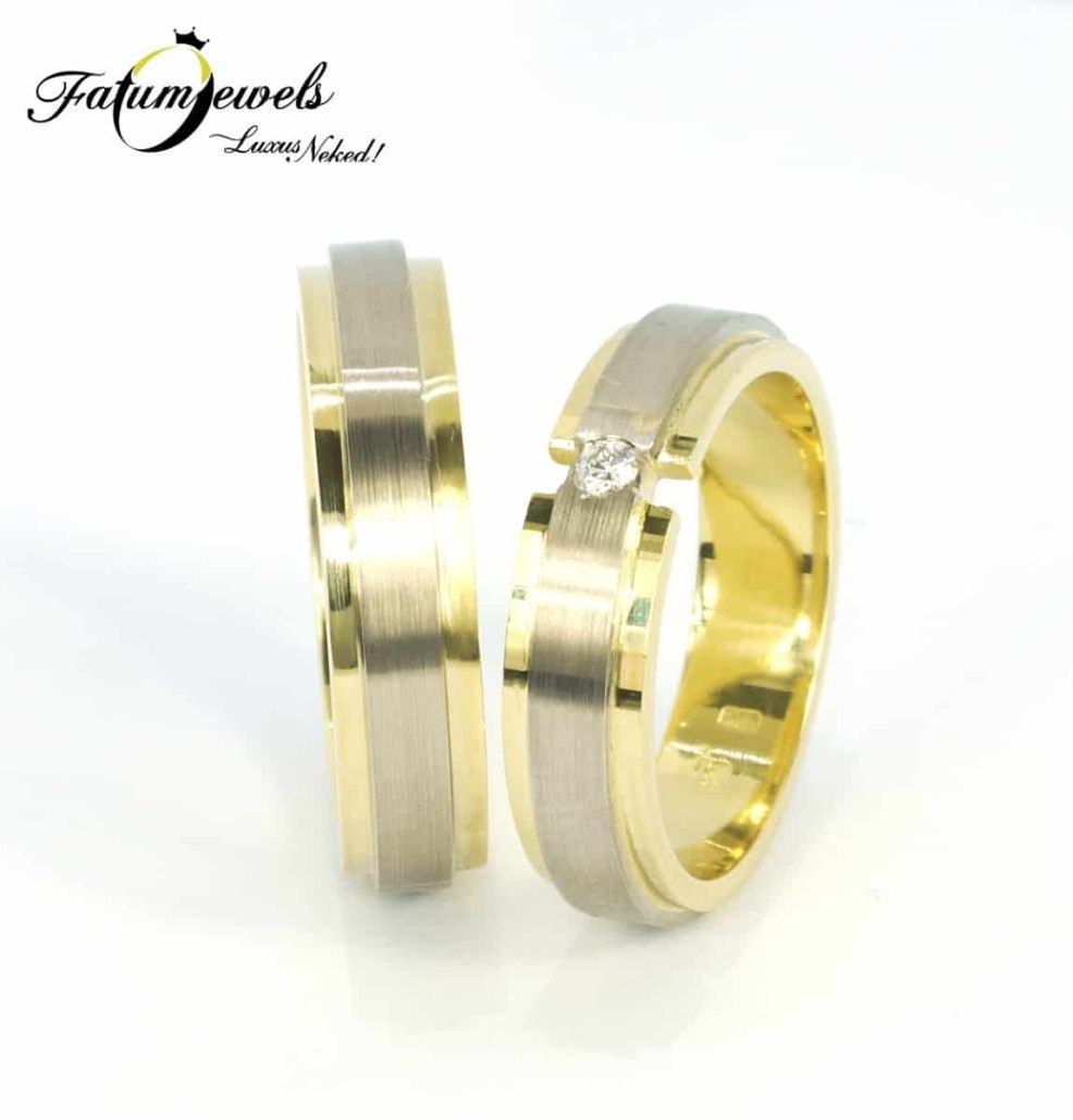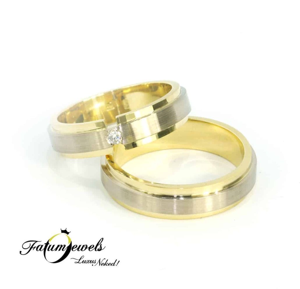 Fehér- és sárga arany gyémánt karikagyűrű pár