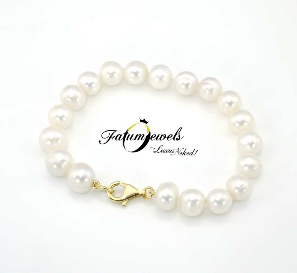 A nagyobb méretű gyöngyök olykor elegánsabbnak hatnak a megfelelő öltözékkel kombinálva. Te is a nagyobb fehér gyöngyöket szereted? Most könnyedén a csuklódon érezheted, hiszen ez az édesvízi fehér gyöngy karkötő arany kapoccsal meglehetősen visszafogott áron elérhető a Fatumjewels Galéria gyöngy ékszer felhozatalában.