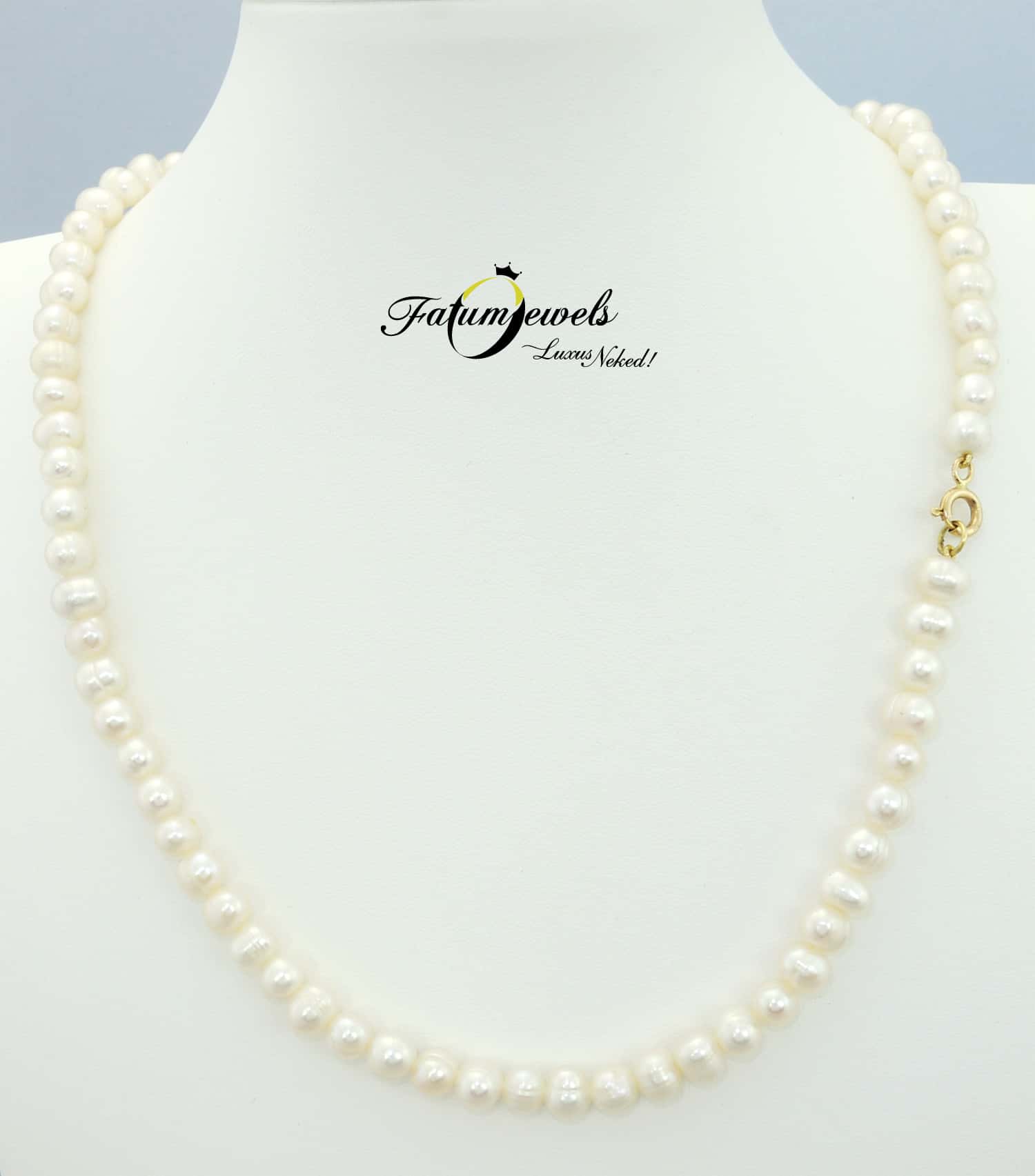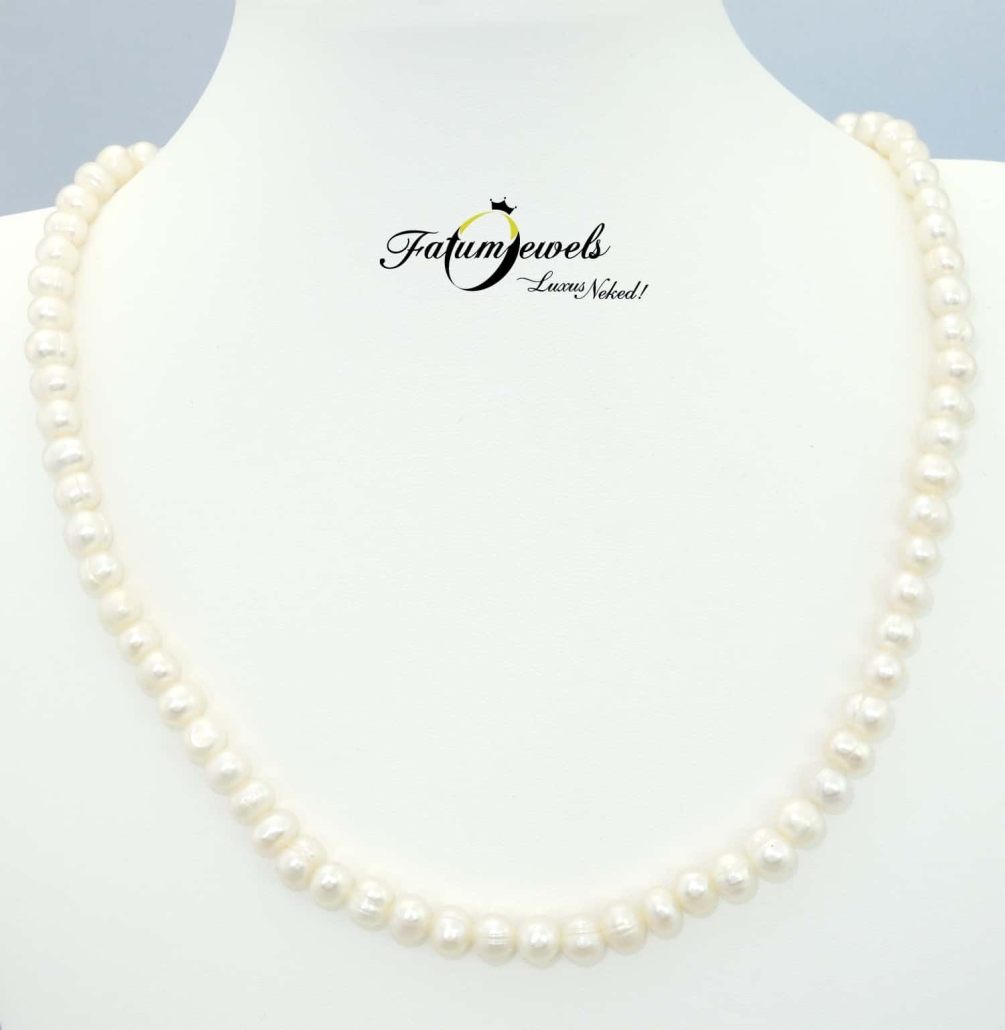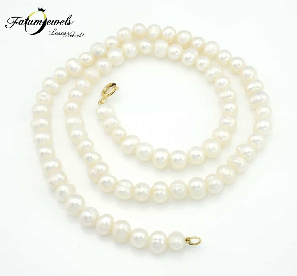 Ez az édesvízi fehér gyöngysor most szenzációs áron elérhető a Fatumjewels Galéria gyöngy ékszer palettáján, ezért akár meglepetés ajándékként is kitűnő választás lehet. A fehér gyöngysor mindig az elegancia megtestesítője volt, és ez ma sincs másként. A sárga arany kapocs még szebbé teszi a látványt.