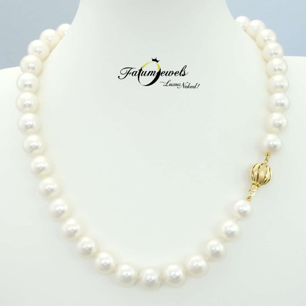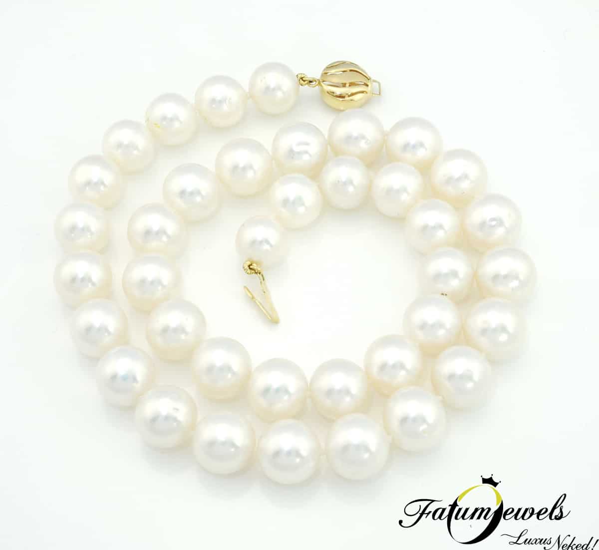 Ha fehér, akkor legyen hófehér, mint ennek az édesvízi gyöngysornak a gyöngyszemei. Még a sárga arany kapocs is különlegesen ívelt dizájnt kapott, hogy mindenképpen felérjen a hófehér gyöngysor szépségéhez. A Fatumjewels Galéria édesvízi gyöngysor palettáján különleges helyet kapott ez a hópelyheket idéző csodás gyöngysor.