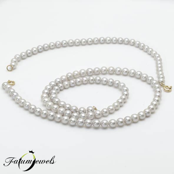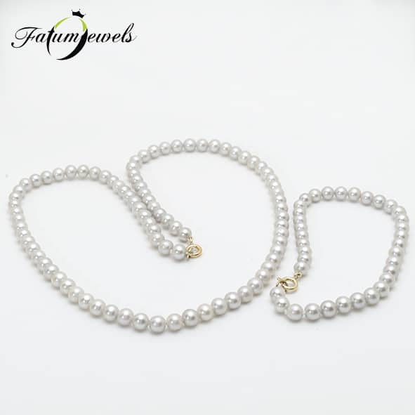 Ezüst színű valódi gyöngysor és gyöngy karkötő meglepően kedvező áron a Fatumjewels Galéria kínálatában. Elegáns viselethez ajánlott elsősorban ez az édesvízi ezüst gyöngy szett, melynek ezüstös csillogása átragyog az éjszakán és nappalon. Fekete alkalmi viselettel különösen erőteljes hatást lehet elérni. Fatumjewels ezüst gyöngy szett elérhető áron.