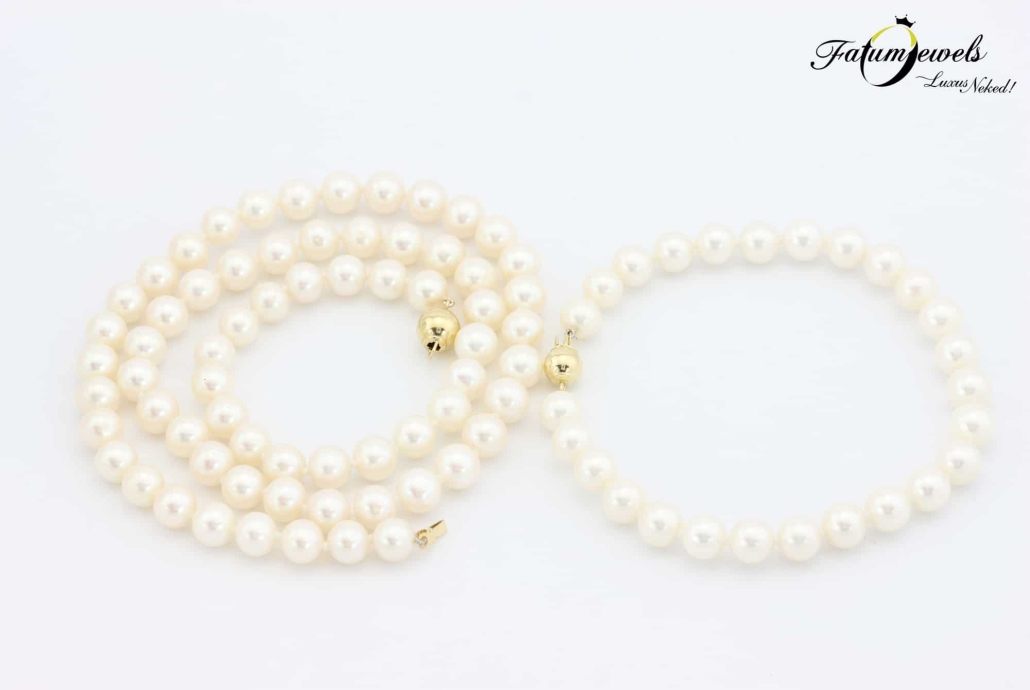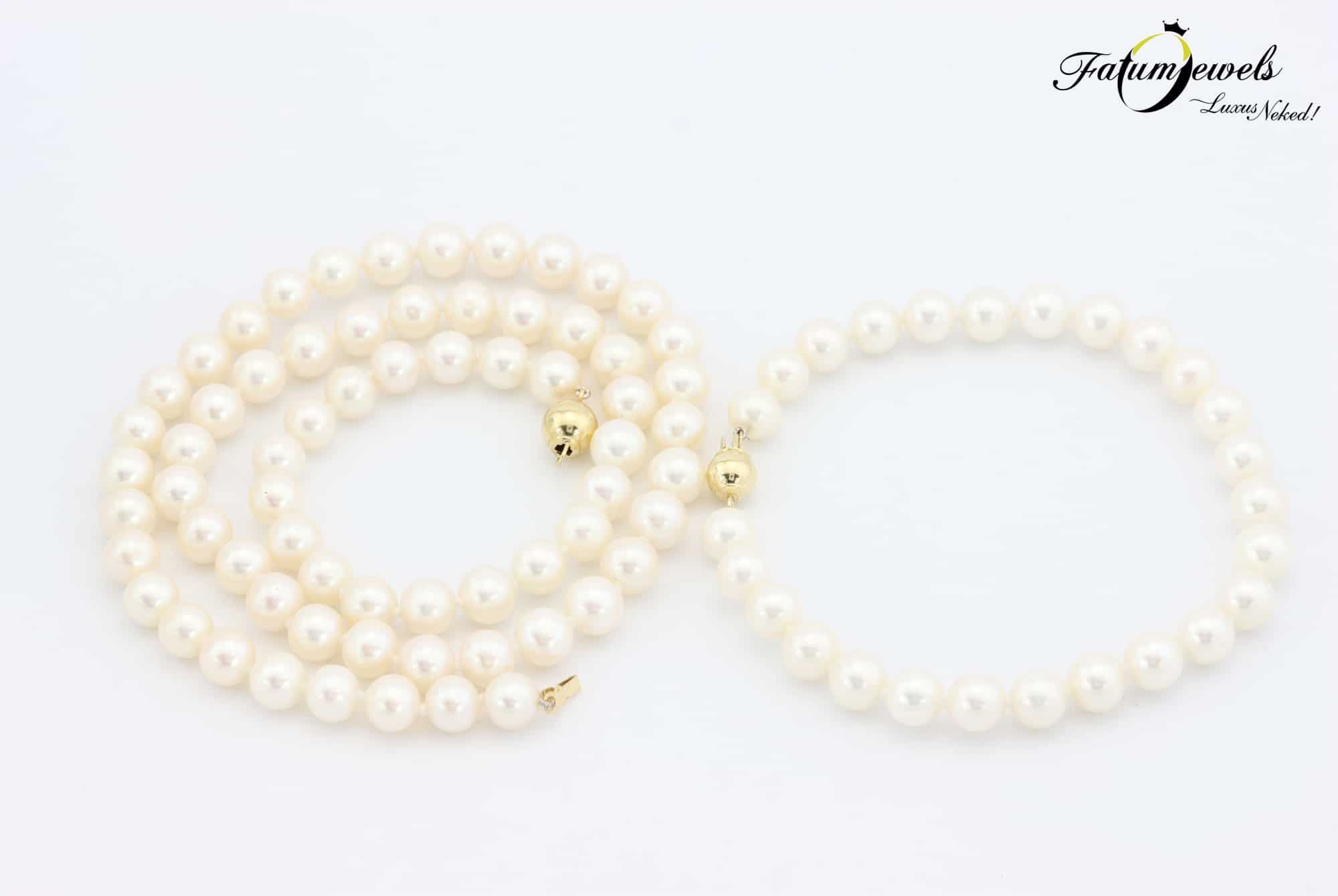 Egy-két évtizede a fehér gyöngysor idejétmúltnak számított, ám hamar rádöbbentek a hölgyek, hogy egy valódi édesvízi tenyésztett fehér gyöngysor, és egy valódi édesvízi tenyésztett fehér gyöngy karkötő maga a megtestesült elegancia, melynek divatja valójában időtálló. A Fatumjewels Galéria berkein belül gondoskodtunk arról, hogy ár tekintetében is elérhető legyen számodra az igényesség, hiszen megérdemled. A kézzel fűzött, szemenként egyesével csomózott szett összesen 93 szabályos gömb formájú gyöngyszemből áll.