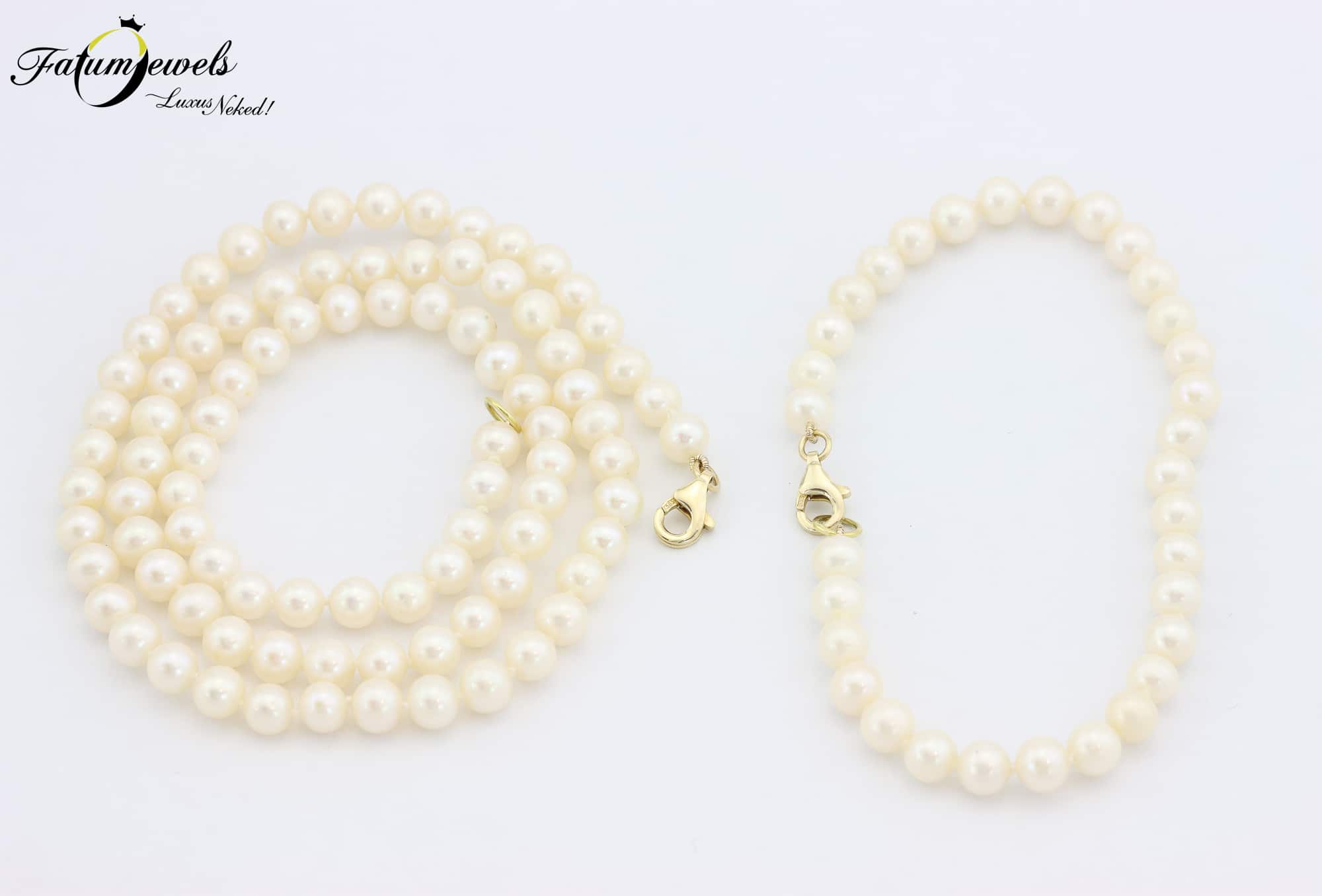 Azt gondoltad eddig, hogy nincs lehetőséged elegánsnak lenni? A Fatumjewels Galéria gondoskodik rólad is! A lehetőségeid ma már létezőek. Elképesztő áron elérhető ez a szett, amely egy valódi, tenyésztett édesvízi fehér gyöngysorból és valódi, tenyésztett édesvízi fehér gyöngy karkötőből áll sárga arany kapoccsal a Fatumjewels Galériában. Ezzel új szakasz kezdődik az életedben, melyet a valódi elegancia fémjelez.