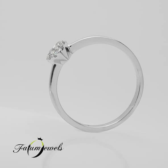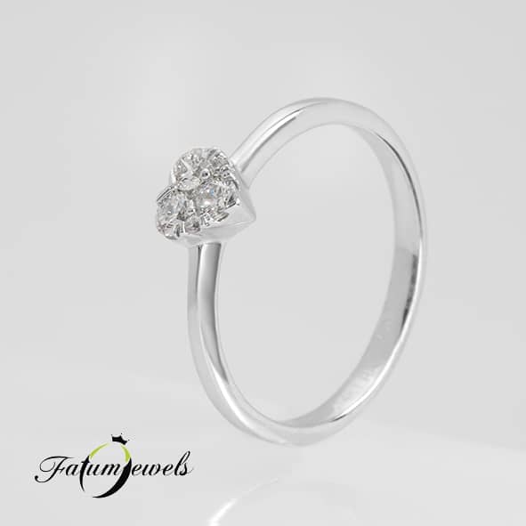 Szív alakban elrendezett briliáns gyémántok az eljegyzési gyűrű díszeként, ha érzelmeid különlegesek, és ezt egy eljegyzési gyűrű révén szeretnéd kifejezni. Tedd emlékezetessé a pillanatot kedvesed számára! Gyémántszív eljegyzési gyűrű a Fatumjewels Ékszer- és Drágakő Galéria tervezésében romantikus hölgyek számára.