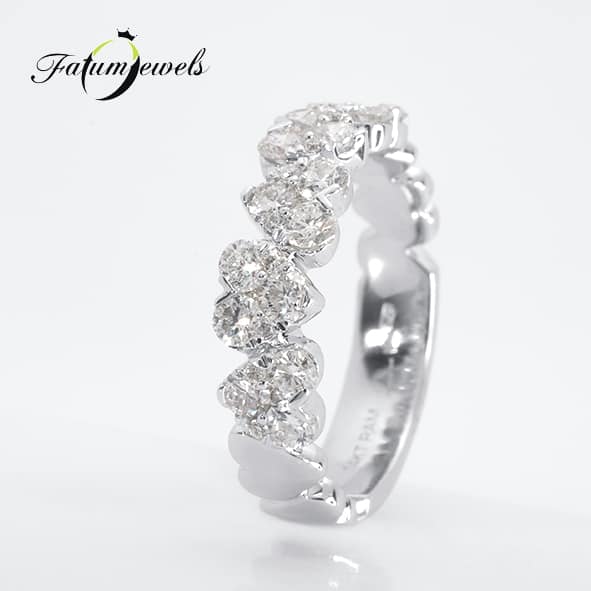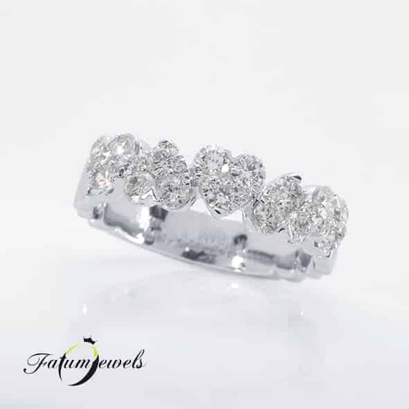 Gyémántszív kavalkád eljegyzési gyűrű a Fatumjewels Galériában. Fehérarany eljegyzési gyűrű öt gyémántszívvel, melyek briliáns gyémántokból állnak, valamint két oldalon két-két fehérarany szívvel. Mivel is fejezhetnéd ki jobban kedvesed iránt érzett szerelmedet, mint egy gyémántszív kavalkáddal? Ez az eljegyzési gyűrű megtalálható a Fatumjewels Galéria kínálatában.