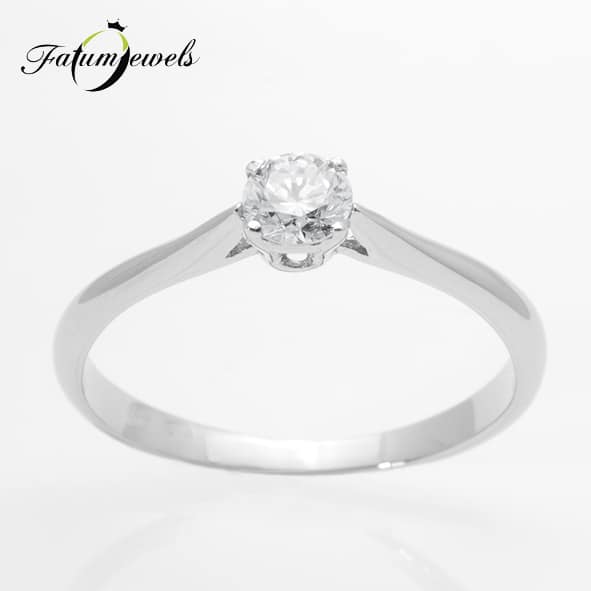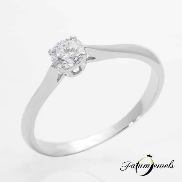 Hagyományos eljegyzési gyűrű az álmod, de szeretnél egy kis extra dizájnt? Fatumjewels eljegyzési gyűrű 0,25 karát briliáns gyémánttal. A gyűrűvégek a gyémántnál lapítottak, kiemelkednek az eljegyzési gyűrű