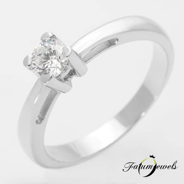 Duplafalú eljegyzési gyűrű 0,25 karát briliáns gyémánttal. Az eljegyzési gyűrű formai kialakítása egyszerű, szinte hagyományos, ám a duplafalú kialakítás mégis különlegessé, egyedivé teszi azt. Az egyenes, széles gyémántfoglalat még teljesebbé teszi az egyszerűség érzését. Fatumjewels eljegyzési gyűrű kínálat.