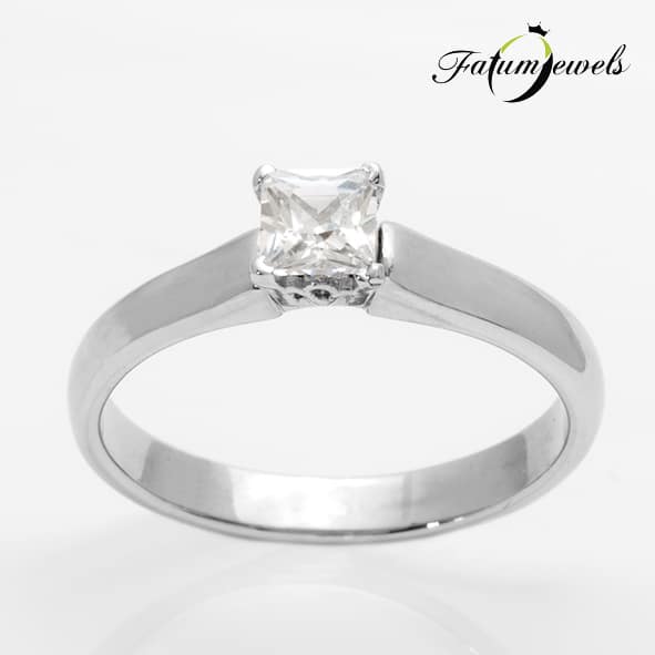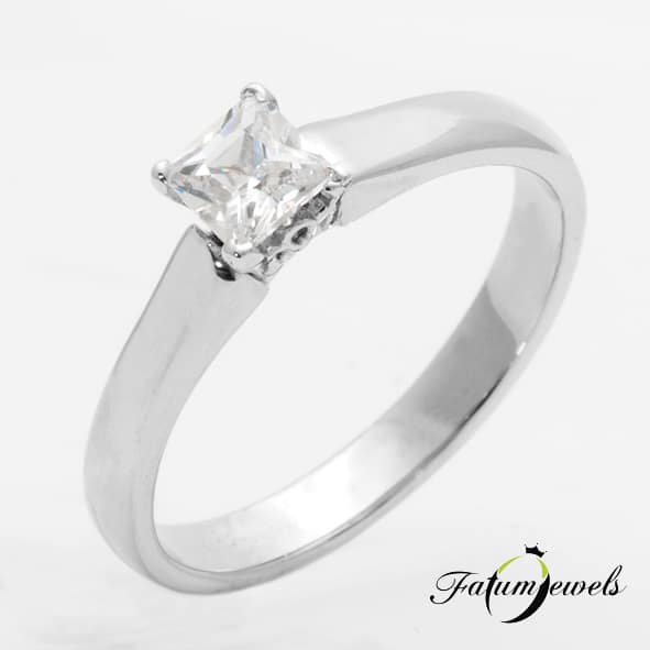 Minimalista eljegyzési gyűrű 0,40 karát princess gyémánttal. A gyűrűszélek sarkosak, melyek még jobban kiemelik a princess gyémánt szögletességét. A gyémántfoglalat kosárka alakú kialakítást kapott, mely enyhíti az eljegyzési gyűrű minimalista jellegét. Mindig princess gyémántra vágytál? Fatumjewels eljegyzési gyűrű tervezés a sarkos formák kedvelőinek.