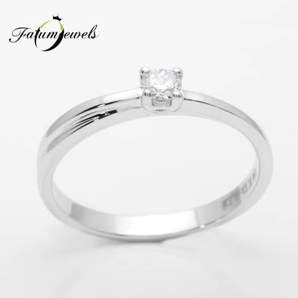Aszimmetrikus eljegyzési gyűrű briliáns gyémánttal szolid áron a Fatumjewels Galériában. Szereted a formabontó stílust? Nem akarsz átlagos eljegyzési gyűrűt kedvesednek? Akkor ez az eljegyzési gyűrű tetszeni fog a maga aszimmetrikus kialakításával és kedvező árával. Törj ki a hétköznapok egysíkú formáiból! Fatumjewels eljegyzési gyűrű az érdekesség jegyében.