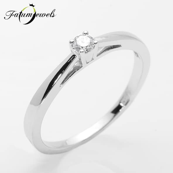 Fatumjewels gyémánt eljegyzési gyűrű briliáns gyémánttal, alacsony áron. A gyémántfoglalat beborítja a gyémánt oldalát, plusz a dupla gyűrűvégek kiemelik azt az eljegyzési gyűrű síkjából. Ez az eljegyzési gyűrű nagyon kedvező áron érhető el a Fatumjewels Galériában, ahol az érzelmek kifejezése a legfontosabb.