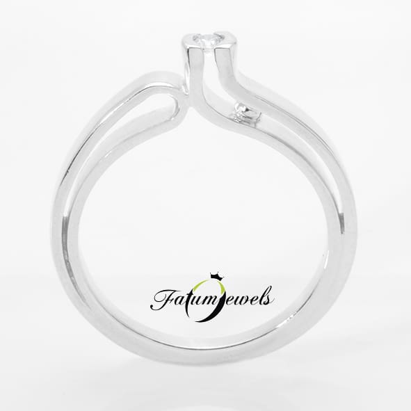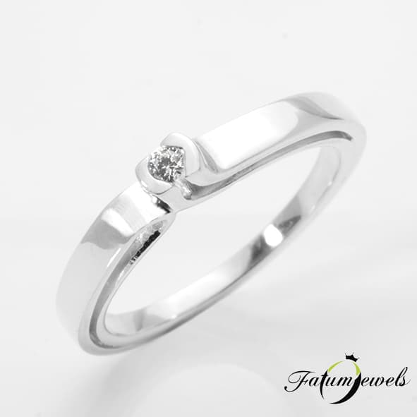 Különleges dizájnra vágysz? Szeretnél olyan eljegyzési gyűrűt, mely eltér a hagyományos formáktól? Akkor ez a fehérarany gyémántgyűrű éppen neked készült a Fatumjewels Galéria alkotóműhelyében. Az sem utolsó szempont, hogy az eljegyzési gyűrű ára meglehetősen visszafogott. Összehajtogatott gyűrűvégek, melyen egy briliáns gyémánt ragyog.