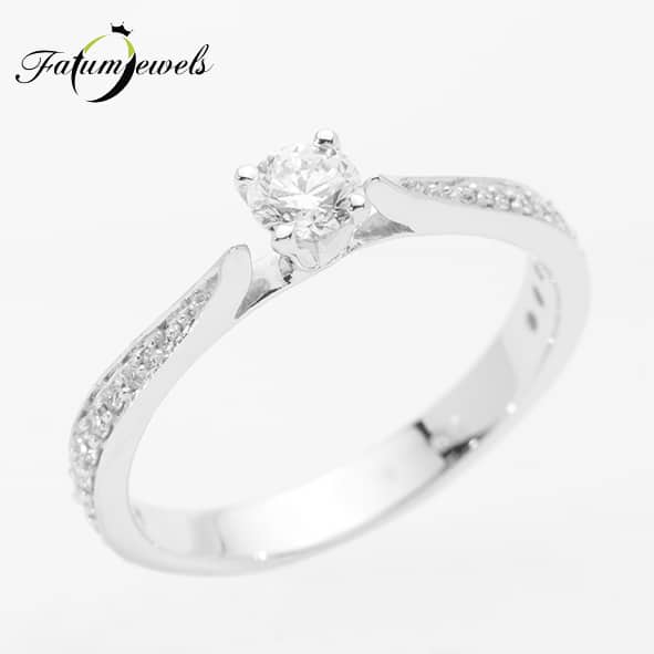 Össze nem érő gyűrűvégek között lebegő briliáns gyémánt. Misztikus beállítottságú hölgyek számára kifejező eljegyzési ajándék lehet ez a Fatumjewels Lebegő Gyémánt eljegyzési gyűrű, mely 0,46 karát briliáns gyémánt drágakő díszítést kapott. Titokzatos, rejtélyes hölgyek tökéletes önkifejezése lehet ez a gyémántgyűrű.