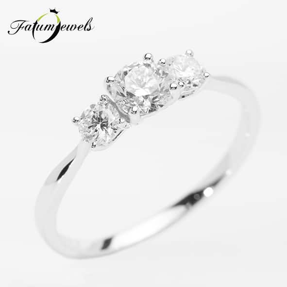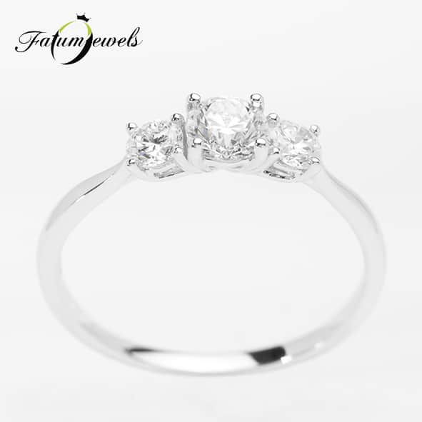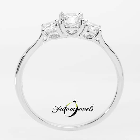 Ajándékozz királynői ragyogást kedvesednek a lánykérés során. Fatumjewels gyémánt eljegyzési gyűrű három briliáns gyémánttal, mely királynői tiarára hasonlít. A gyémántok össztömege 0,76 karát. Fehérarany gyémántgyűrű, mely jelesebb alkalmakra is kedves és kifejező ajándék lehet. Arisztokratikus megjelenésű hölgyek számára tervezve a Fatumjewels Galéria által.