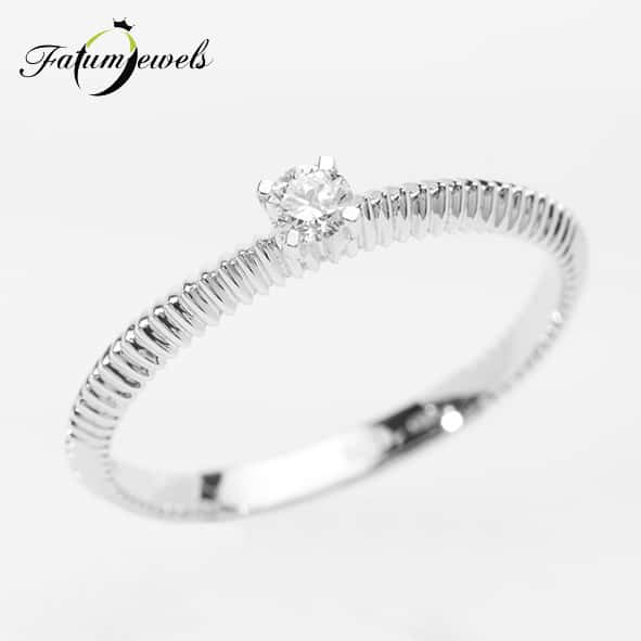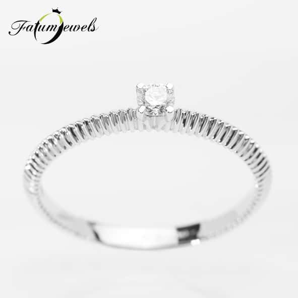 Nem tudod eldönteni, hogy tradicionális vagy modern eljegyzési gyűrű mellett dönts? Ez a fehérarany gyémánt eljegyzési gyűrű lesz a jó választás, melyet a Fatumjewels Galéria tervezőcsapata oly módon készített el, hogy emlékeztessen a hagyományos gyémántgyűrűre, de a gyűrűfelszín modern formatervezésű legyen.