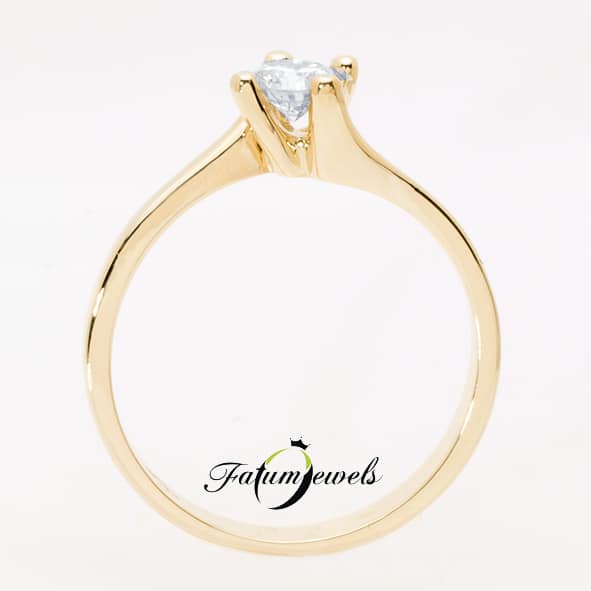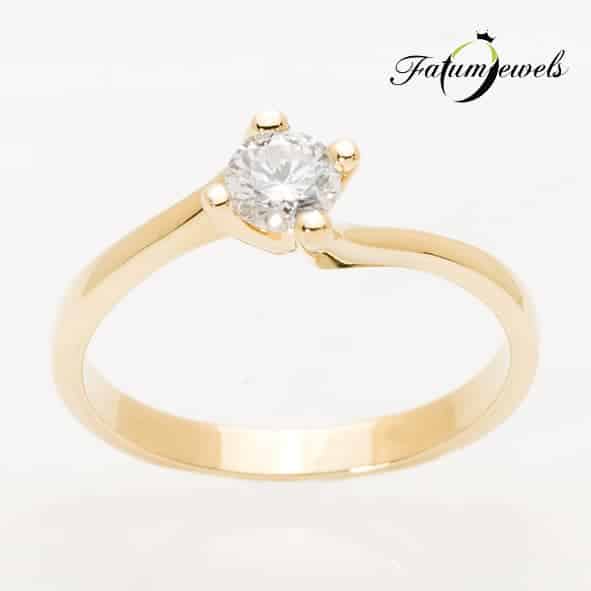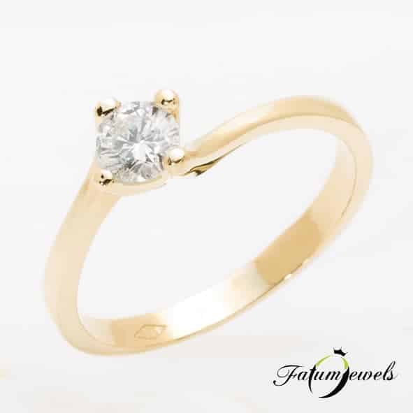 Különböző életutak találkozása egy briliáns gyémánttal összekapcsolva az eljegyzési gyűrű által kifejezve. Sárga arany eljegyzési gyűrű, mely végei nem kapcsolódnak közvetlenül, hanem a briliáns gyémánt tartja össze a végeket. Fatumjewels eljegyzési gyűrű a sorsszerűség jegyében.