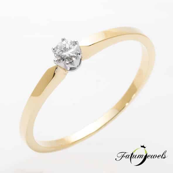Jelzésértékű eljegyzési gyűrű a választottad álma? Szereti a visszafogott ragyogást? Egyszerű sárga arany eljegyzési gyűrű 0,09 karát briliáns gyémánttal, mely a gyűrű kicsúcsosodó elején található. Fatumjewels eljegyzési gyűrű tervezés a szerénység és a romantika jegyében.