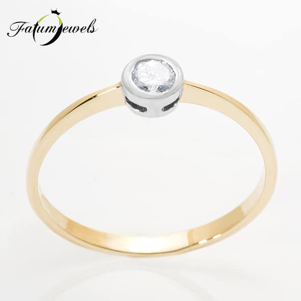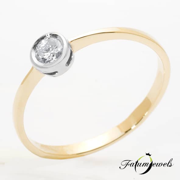 Keskeny eljegyzési gyűrű kerek foglalatban, mely hűen követi a briliáns gyémánt formáját. Az ívelt, kerek formák kedvelőinek ajánlott ez a Fatumjewels eljegyzési gyűrű, mely mégis a sokszínűséget közvetíti a maga egyszerűségében. Eljegyzési gyűrű a Fatumjewels kínálatában.