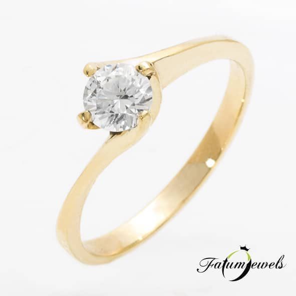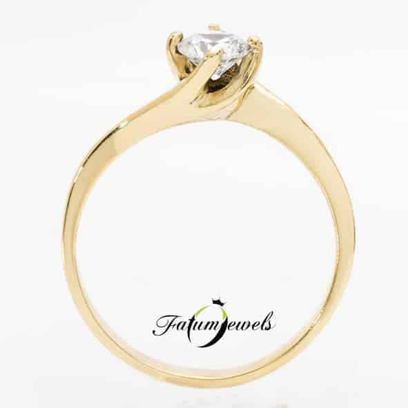 Egymásba csavarodó szélű sárga arany eljegyzési gyűrű, melynek karmocskái őrzik a 0,40 karát briliáns gyémántot. Az érték, melyre egy egész két fele vigyáz. Ezek vagytok ti, ezt fejezi ki az eljegyzési gyűrű, mely minden nap erre emlékezteti majd kedvesedet.