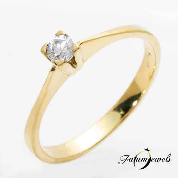 V alakú foglalatba zárt briliáns gyémánt díszíti az eljegyzési gyűrűt, mely régi hagyomány szerint a győzelem szimbóluma. Valódi győzelemként éled meg, hogy Ő a tiéd lehet? Fejezd ki eljegyzési gyűrű révén! Fatumjewels eljegyzési gyűrű a győzelem jegyében.
