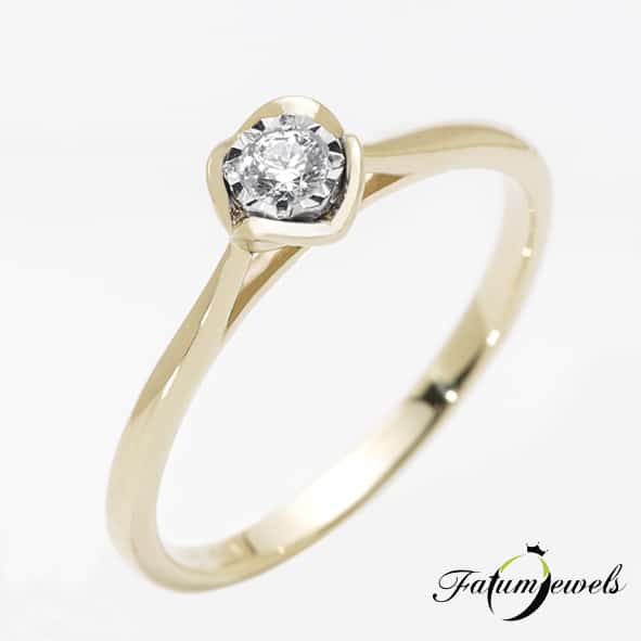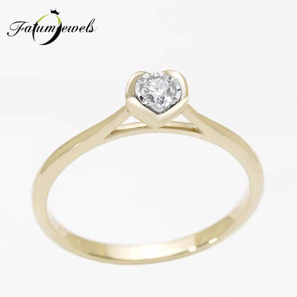 Romantikus gyémánt eljegyzési gyűrű szív alakú drágakő foglalattal a Fatumjewels Galériában alacsony áron. Az eljegyzési gyűrű briliáns gyémántdíszítését mindkét oldalról egy-egy ívben hajlított szív határolja, mely valójában maga a gyémántfoglalat. Romantikus ajándékot keresel visszafogott áron? Ez az eljegyzési gyűrű lesz a jó választás, melyet megtalálsz a Fatumjewels Galériában.