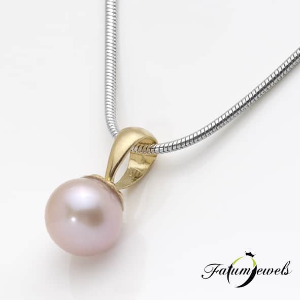 Romantikus gyöngy medál a Fatumjewels Galéria gyöngyékszer kínálatában. A barack színű valódi gyöngy és a sárga arany olyan színkombinációt hoz létre, mely kifejezetten romantikus hölgyeknek ajánlott. Alacsony ára miatt még alkalom sem szükséges, hogy ez a Fatumjewels gyöngy medál legyen az ajándék. Fatumjewels gyöngyékszer a romantika jegyében.