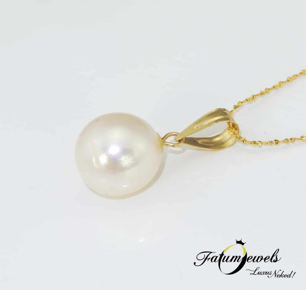 Ez a tökéletes formájú fehér gyöngy a kagylóban várakozott arra, hogy a nyakadba kerülhessen, hogy emelhesse megjelenésed fényét, hogy kiegészíthesse a lényedből áradó ragyogást. Végül egy sárga arany foglalatban kapott helyet ez a csodás kerek fehér gyöngy, mely a Fatumjewels Galéria gyöngy ékszer kínálatában fellelhető, ráadásul roppant kedvező áron.