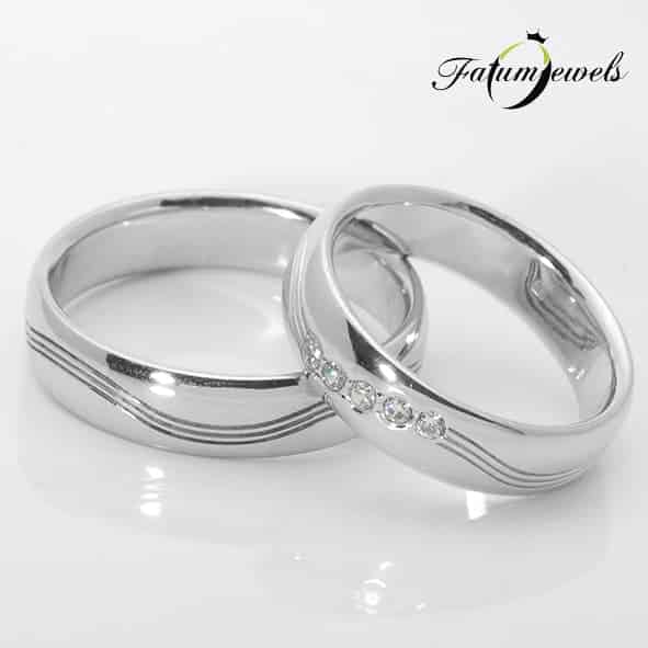 Játsszátok le dallamként érzelmeiteket és ezt tegyétek örök érvényűvé a karikagyűrű felszínén. A hullámzó vésett kottavonalakon hangjegyként helyezkedik el az öt briliáns gyémánt, ami a karikagyűrű női párját díszíti. Muzikális pároknak ajánlja a Fatumjewels Galéria karikagyűrű tervezőcsapata.