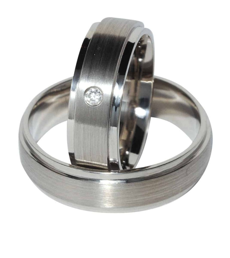Az egyszerű formákat kedvelitek, de ne legyen teljesen minimalista a karikagyűrű? Szálhúzott fehérarany karikagyűrű szinteltolásos felülettel. A szálhúzott alapot mindkét oldalon keskeny fényes felület fogja közre. Hogyan lehet egy szín több színű? A karikagyűrű különböző felületi megmunkálása révén. A karikagyűrű női párját gyémánt díszíti.