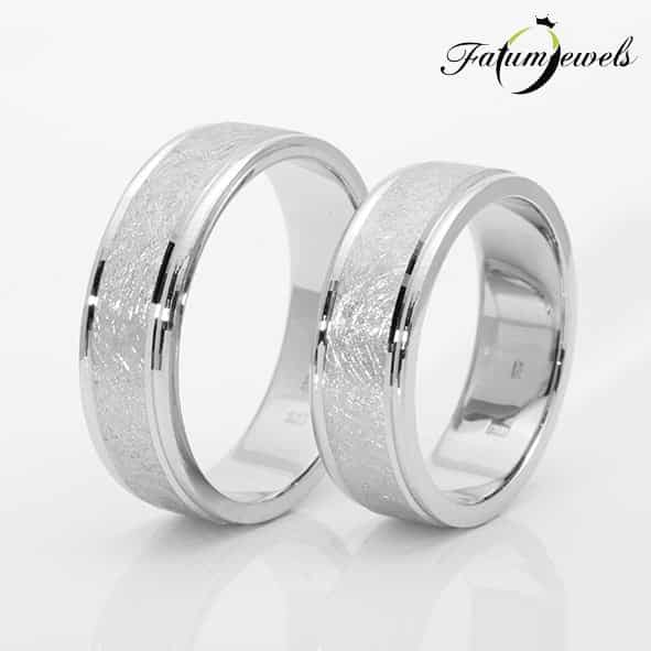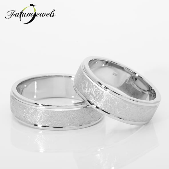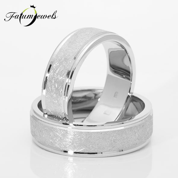 Jégvirágos karikagyűrű tükörlap szélekkel. Ha sok emlék fűz titeket a télhez, akkor ez a karikagyűrű pár éppen nektek készült. Rusztikus felületű széles karikagyűrű, melynek jégvirág hatása van, tükörlapvésett technológiával megmunkált szélekkel. Fatumjewels Galéria által tervezett fehérarany karikagyűrű pár.