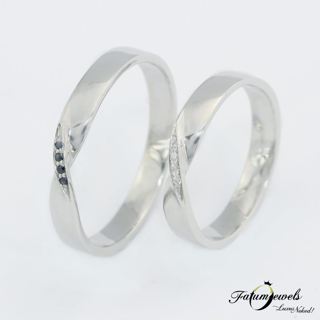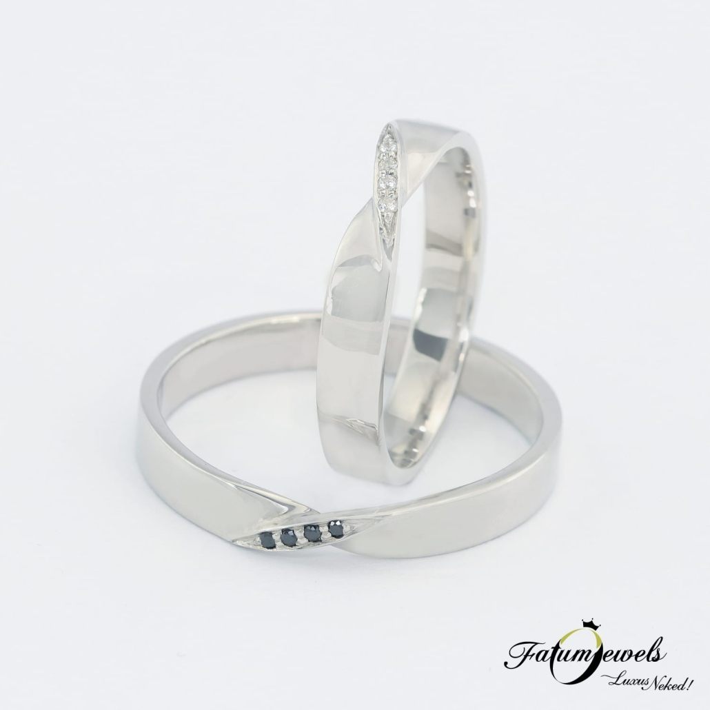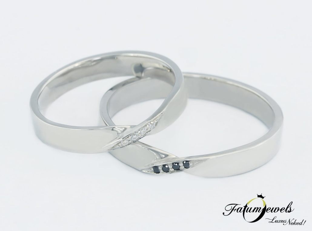 Fehérarany Csavart Fehér és Fekete Gyémánt Karikagyűrű Pár