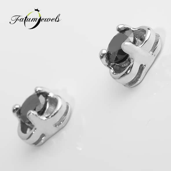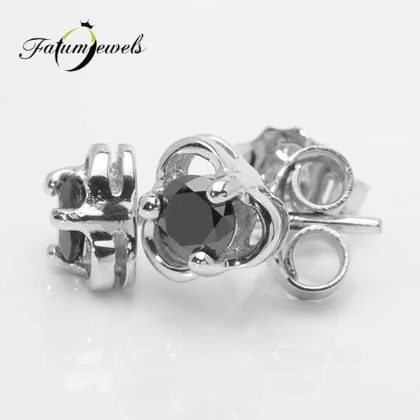 Különleges fekete briliáns gyémánt fehérarany virágszirmokkal körülölelve. Fatumjewels gyémánt fülbevaló 0,40 karát fekete briliáns gyémánttal a különleges színű drágakövek kedvelőinek. A briliáns csiszolású fekete gyémánt fénytörése olyan bizarr, hogy csak ámulunk az alakzatokon, melyeket egy ilyen fülbevaló látványa nyújt. Fatumjewels fülbevaló.