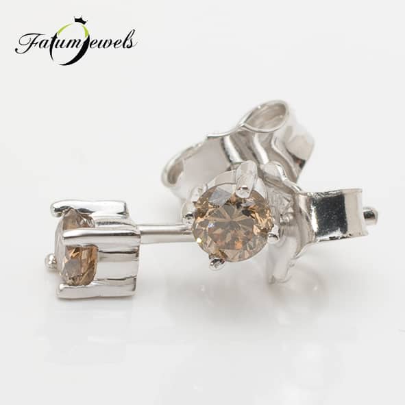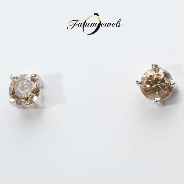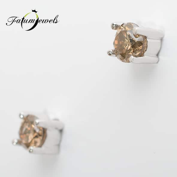 Különleges színek harmóniája ez a Fatumjewels fehérarany fülbevaló konyakszínű briliáns gyémánttal. Ha kedveled a nem hétköznapi színeket, színösszeállításokat, akkor ez a gyémánt fülbevaló tökéletes választás lehet. A konyakszínű gyémánt különleges színe és ragyogása még látványosabb a fehérarany foglalatban. Kedveskedj gyémánt fülbevalóval születésnapra, karácsonyra, vagy bármilyen jeles alkalomra.