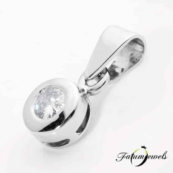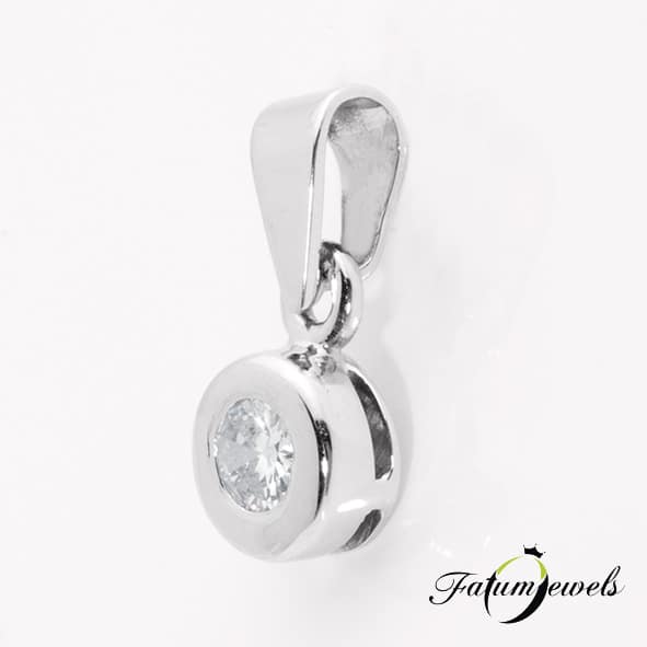 Kedves ajándék akár ballagásra, akár születésnapra ez a Fatumjewels gyémánt medál. A 0,15 karát briliáns finom fehér gyémánt fényes felületű fehérarany foglalatba lett süllyesztve. A fehérarany és a gyémánt két különböző ragyogása egybeolvad a kompakt kialakítás révén. Fatumjewels gyémánt medál akár mindennapi viseletre is.
