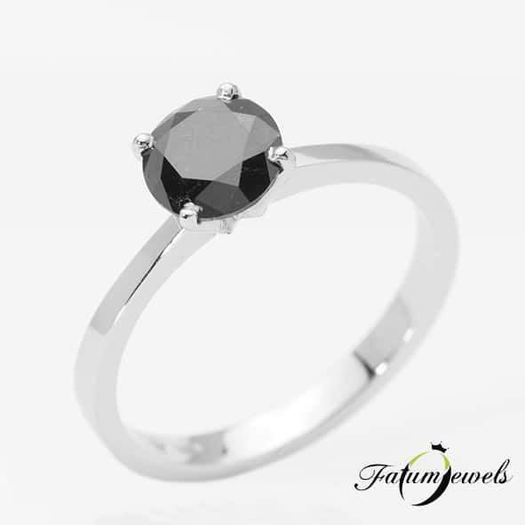 A Fatumjewels Galéria kiemelt ajánlata azok számára, akik nem kedvelik a színes kiegészítőket. A fehérarany eljegyzési gyűrű fekete gyémánt díszítéssel azoknak lesz jó választás, akik az egyszerű, mégis különleges ékszerek hívei. Az 1 karát briliáns fekete gyémánt hétköznapokon is különlegessé teszi viselőjét.