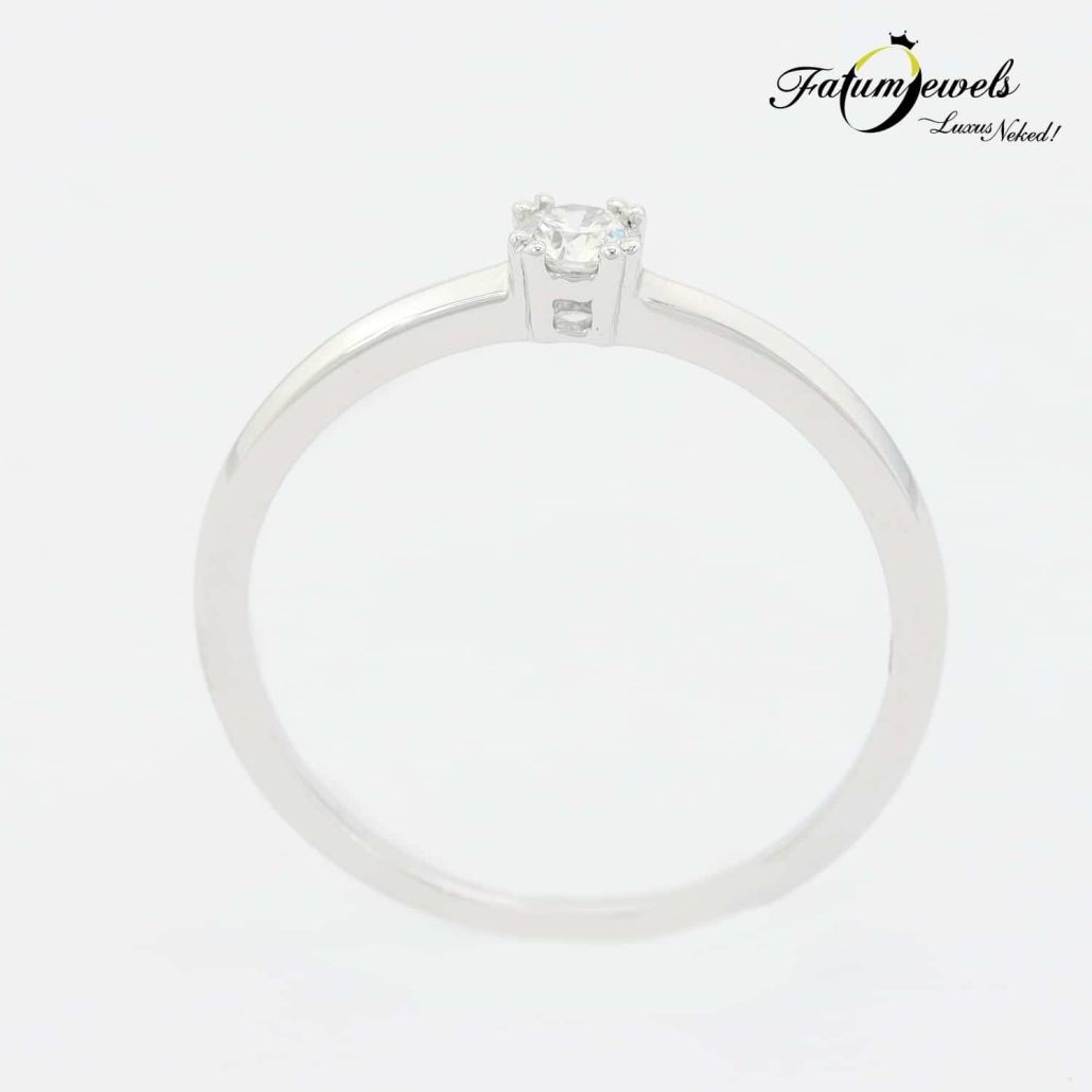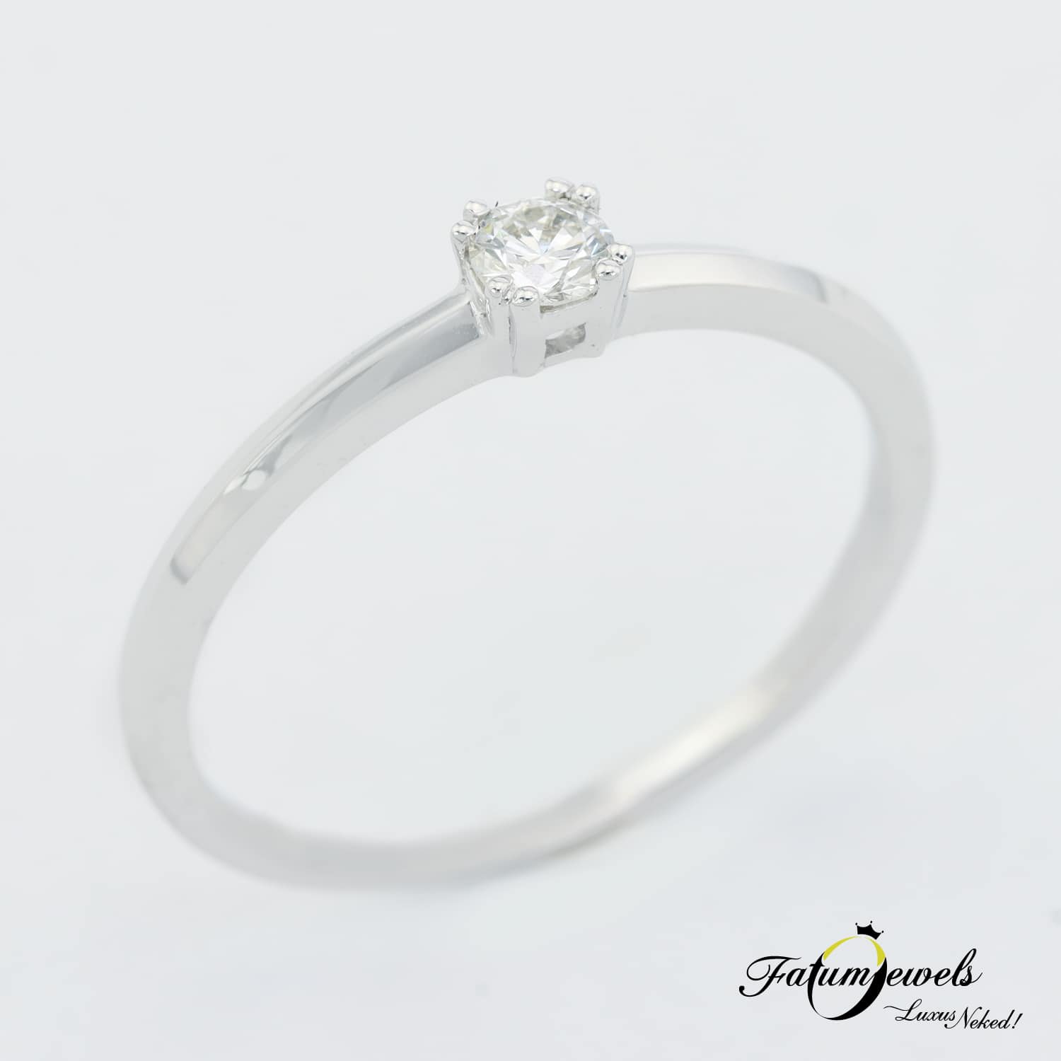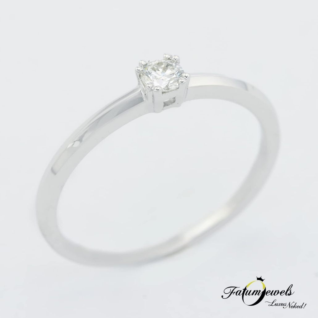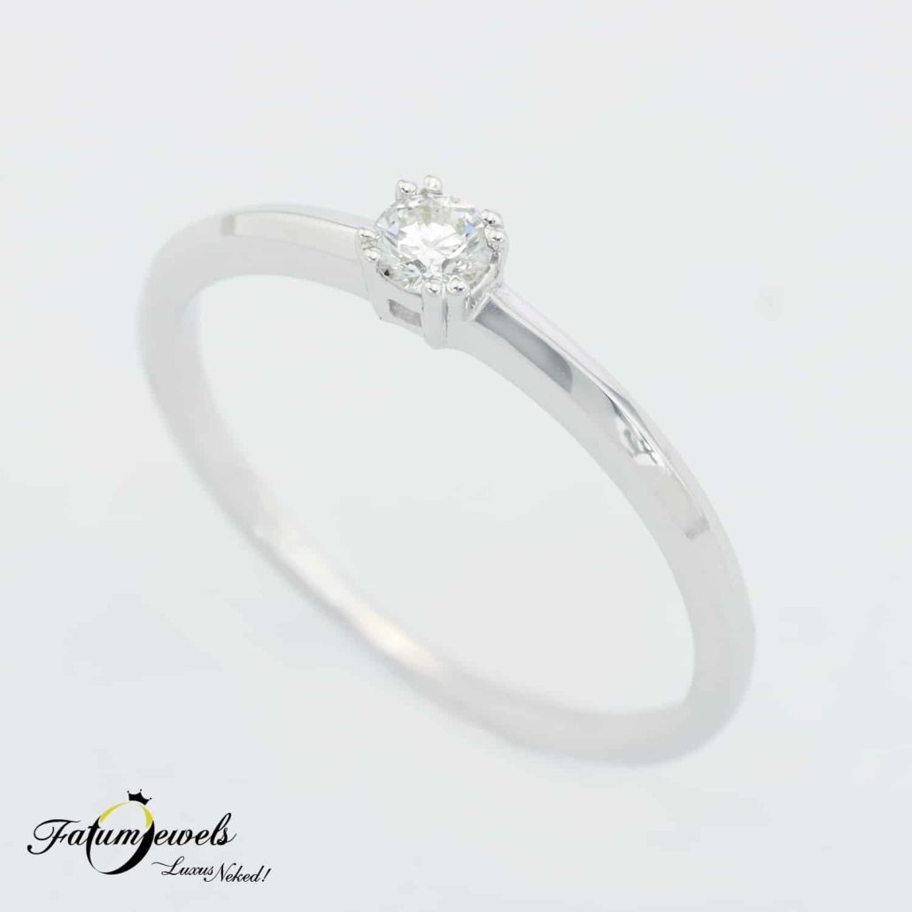 Kedvesed előnyben részesíti a minimalista stílust? Akkor ez a Fatumjewels Galéria által tervezett fehérarany szoliter gyémánt eljegyzési gyűrű kedvére való lesz. A négy dupla karom egy 0,11 karátos finom fehér gyémántot emel ki a gyűrűsínből. Egyszerű vonalvezetés, hagyományos drágakő, kedvező ár. Minden egyben, amit csak kívánsz. Az gyűrű egyszerűsége a sponteneitást suggalja, nem szükséges előre megtervezned a lánykérést.