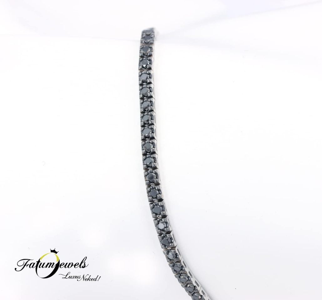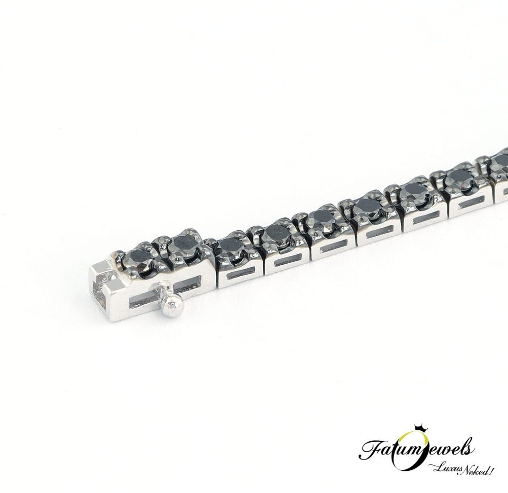 Sok hölgy vágyik egy tenisz karkötőre amióta Chris Evert teniszmérkőzés közben majdnem elveszítette kedvenc karkötőjét, majd közölte, hogy ez a tenisz karkötője. Az eset új ékszert alkotott, ami fekete gyémánt drágakövekkel is csodálatos látvány. A Fatumjewels Galéria elkészítette számodra a fekete gyémánt tenisz karkötőt, hogy úgy is egyedi tudj maradni, ha olyan ékszerre vágysz, amire sokan mások is áhítoznak.