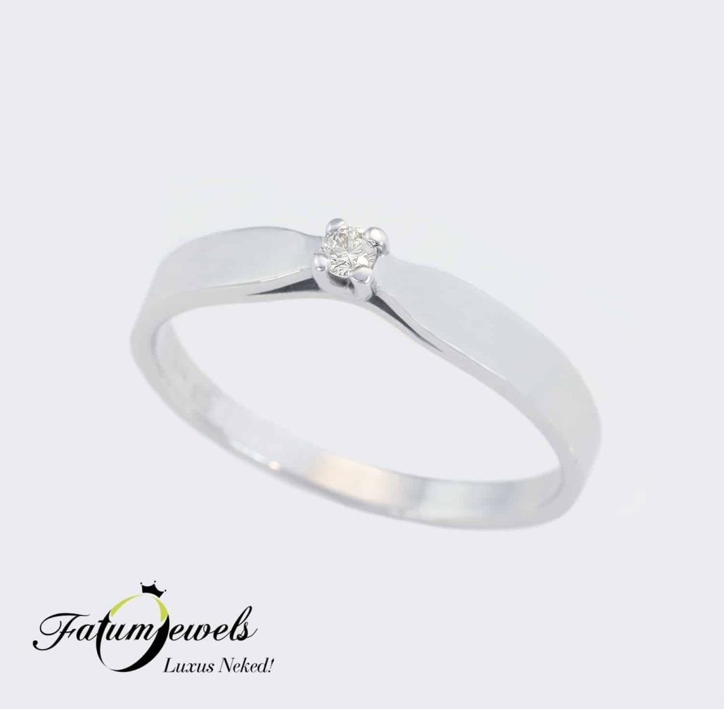 Tökéletesen fényes fehérarany felület, egyedi modern dizájn és valódi briliáns gyémánt. Ezzel az ékszerrel nem maradsz le semmiről, mégis elérhető áron van. Valójában hihetetlenül kedvező áron juthatsz hozzá a Fatumjewels Galériában. Akár már ma megkérheted kedvesed kezét, ha úgy érzed eljött az idő.