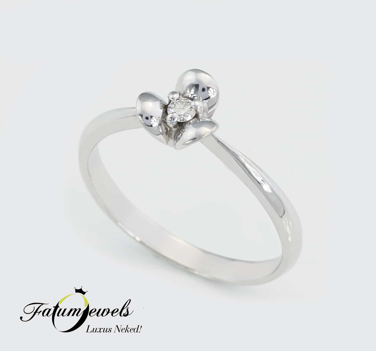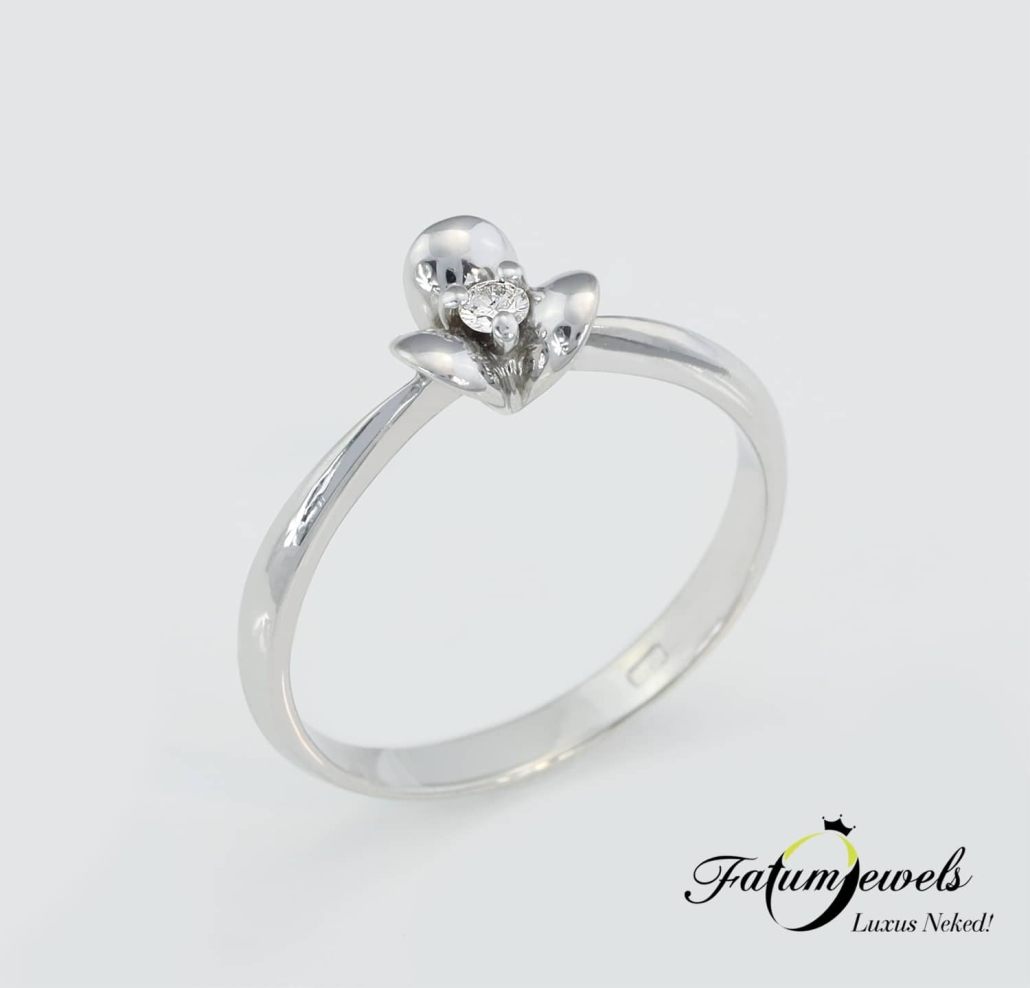 Romantikus hölgy ujjára tervezte a Fatumjewels Galéria ezt az egyedi Szirom gyémánt eljegyzési gyűrűt. Éppen szirombontogatás közben értük tetten ezt a gyémántvirágot, így készült ez a romantikus formatervezésű eljegyzési gyűrű. Kitűnő áron elérhető, így már semmi sem állhat a lánykérés útjába.