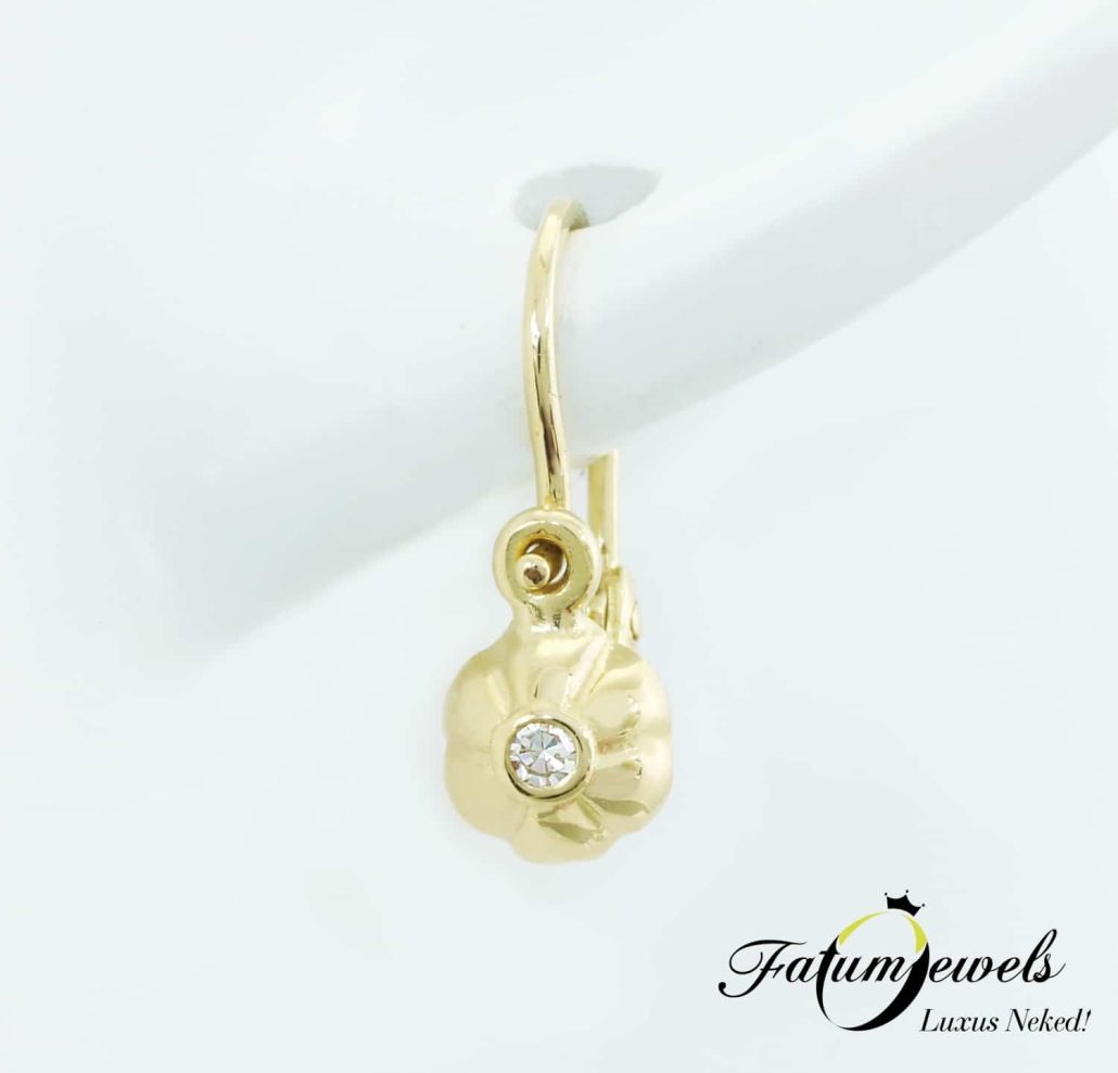 Aranyvirág gyémánt drágakővel, hogy a baba még elragadóbb legyen, ha ez egyáltalán lehetséges. Csodálatosan fénylő sárga arany virág, mely egész évben teljes pompájában látható, a virág közepén egy-egy gyémánttal. A babáknak is joguk van a csinos ragyogáshoz. Fatumjewels tervezésű biztonságos baba ékszer.