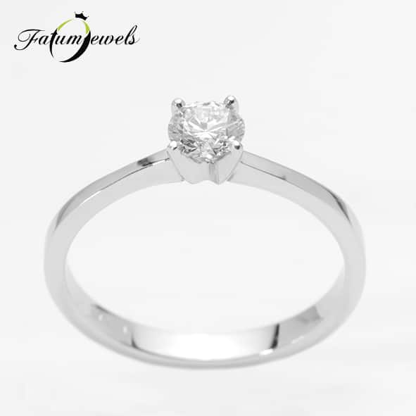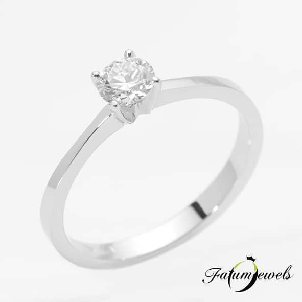 Határozottságot kifejező fehérarany szoliter gyémántgyűrű olyan hölgyek számára tervezve, akik ezzel szeretnék kifejezni alapvetően határozott mentalitásukat. Hagyományos értelemben véve a szoliter gyémántgyűrű jelenti a tökéletes eljegyzési gyűrűt, ám ebben az esetben modern formákkal fűszerezve adja közre mindezt a Fatumjewels Galéria.