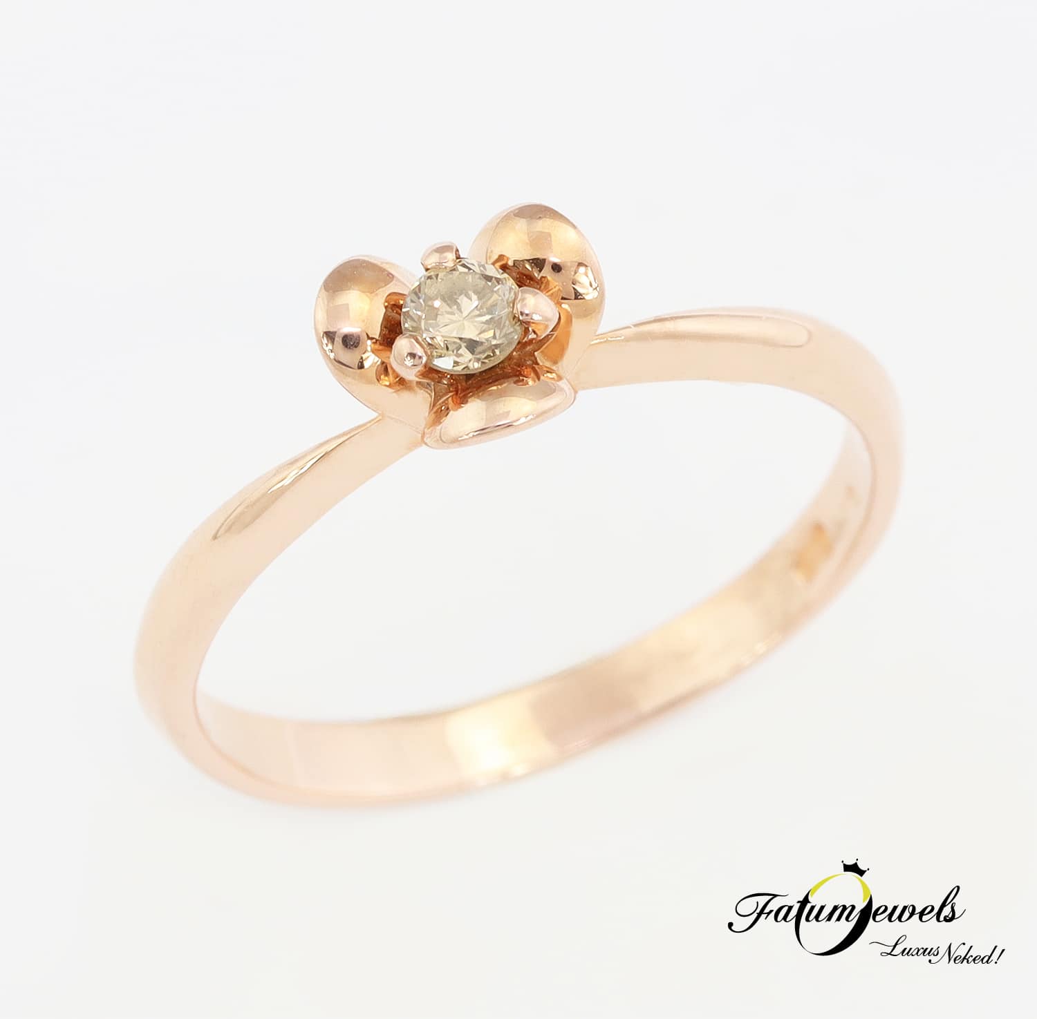 A gyengédség és az érzékenység kifejezőereje óriási, ha ékszerről van szó. A Fatumjewels Galéria egy rozé arany gyűrű formájában jelenítette meg ezt. Csodálatos gyémántvirág rozé arany szirmokkal és konyak gyémánt drágakővel. Tökéletes pasztell színek, kedves forma. Akár ajándékba szánod, akár saját magadat leped meg vele, nagy öröm lesz viselni.