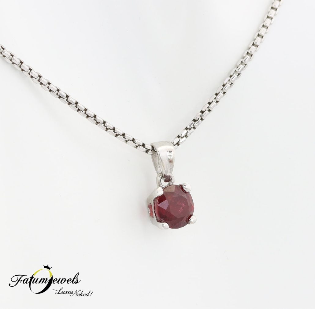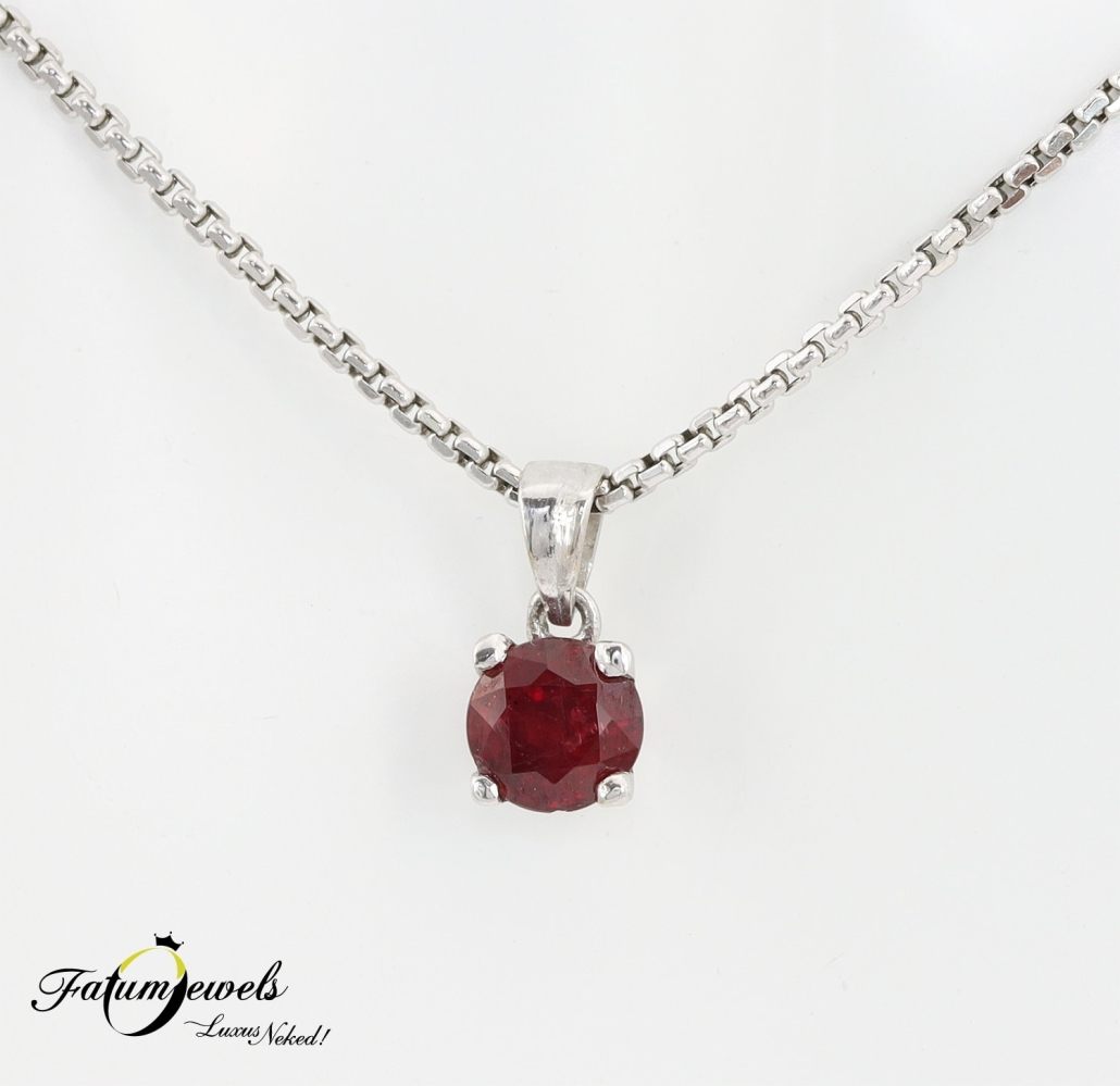 A benned lakozó szenvedély fizikai megtestesülése ez a vörös rubin medál fehéraranyba foglalva. Évezredek óta tudjuk, hogy a rubin az egyik legérzékibb drágakő. Merd büszkén viselni, merd kimutatni szenvedélyes lényedet. A Fatumjewels Galéria ékszer kínálatában fellelhető egyedi rubin medállal könnyebb lesz, ráadásul kiváló áron elérhető.