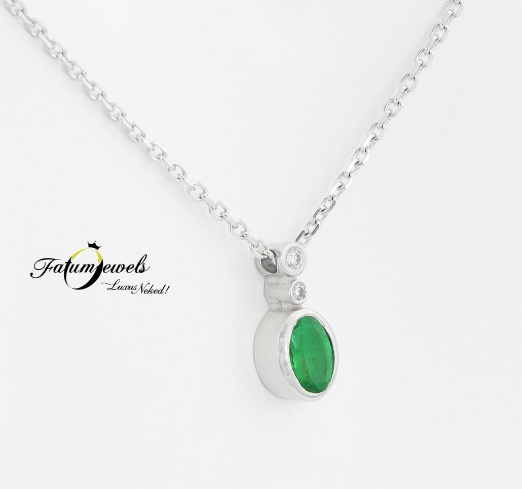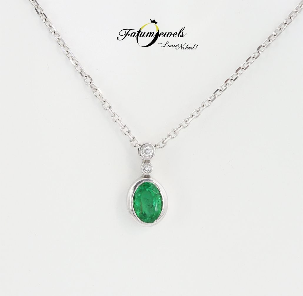 Fehérarany Gyémánt Smaragd Medál Lánccal