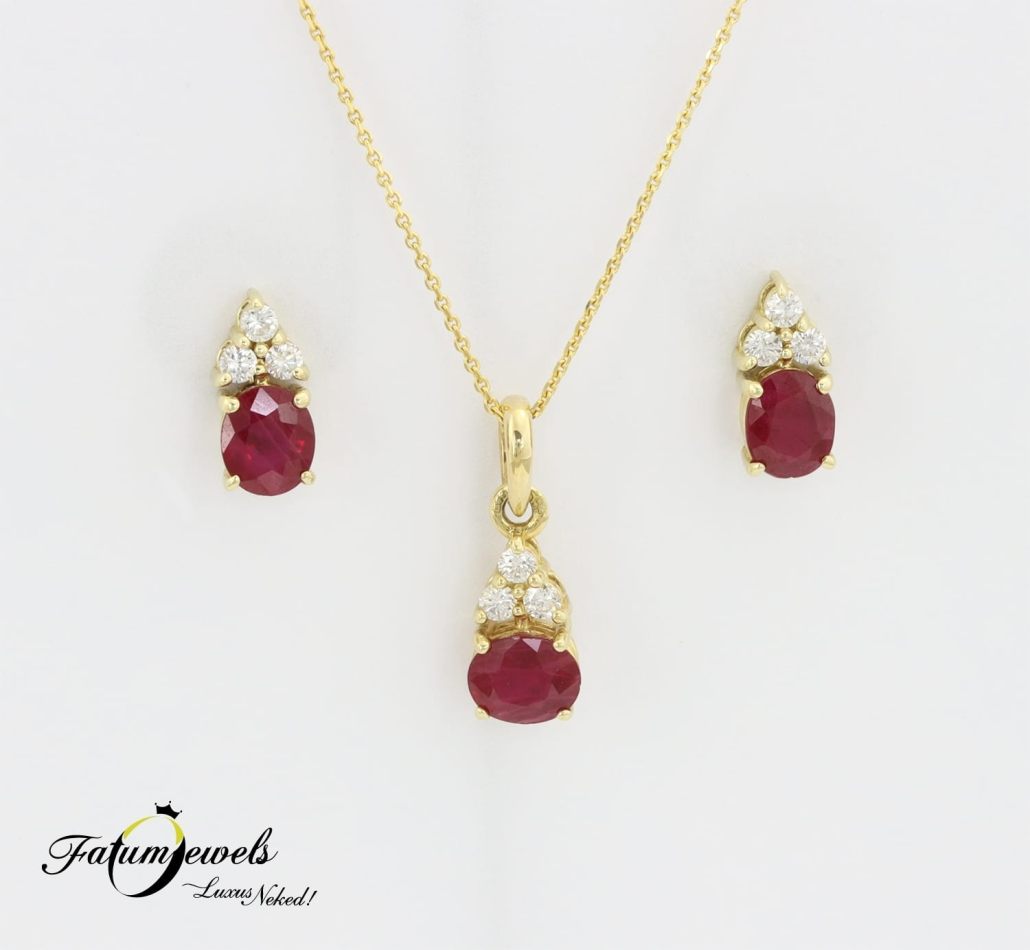 A rubin bőséget biztosít viselője számára. Nemcsak anyagi természetű bőséget, hanem szenvedélyt, energiát és életörömöt is. Ráadásul a rubin segít abban is, hogy ezeket képes legyél megtartani. Nézd, milyen csodálatos ez a gyémánt rubin ékszer szett, amit a Fatumjewels Galéria azért hozott létre számodra, hogy esztétikusabb, energetikusabb és bőségben gazdagabb legyen az életed.