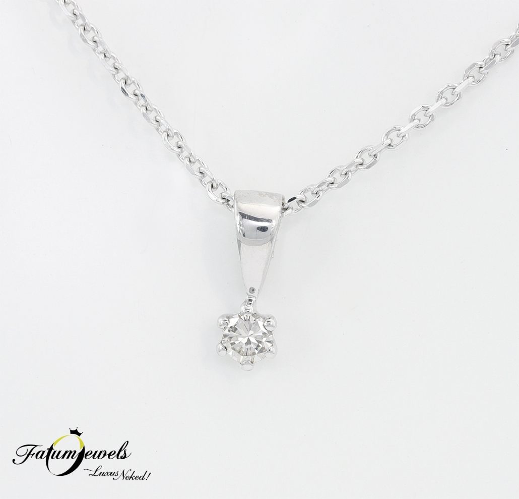 Nem csak menyasszonyi ékszer! Egyszerű, ragyogó, elegáns. Hatkarmos fehérarany foglalatba álmodott briliáns gyémánt, mely egy csodás gyémánt medált formáz. Bár a Fatumjewels Galéria elsősorban egy különleges menyasszony számára tervezte ezt az ékszert, nem csak menyasszony viselheti. Egyedi gyémánt medál az elegancia jegyében.