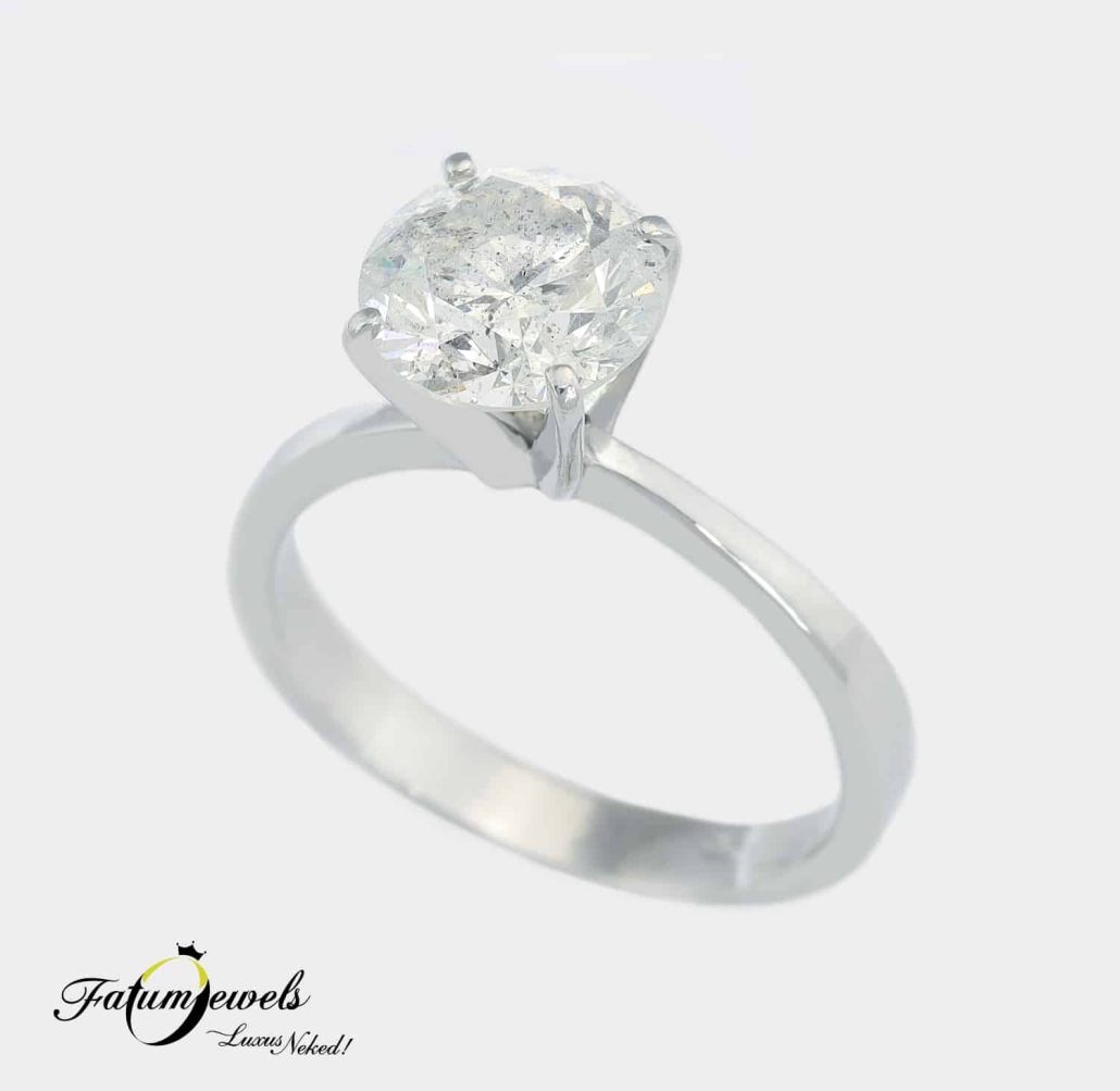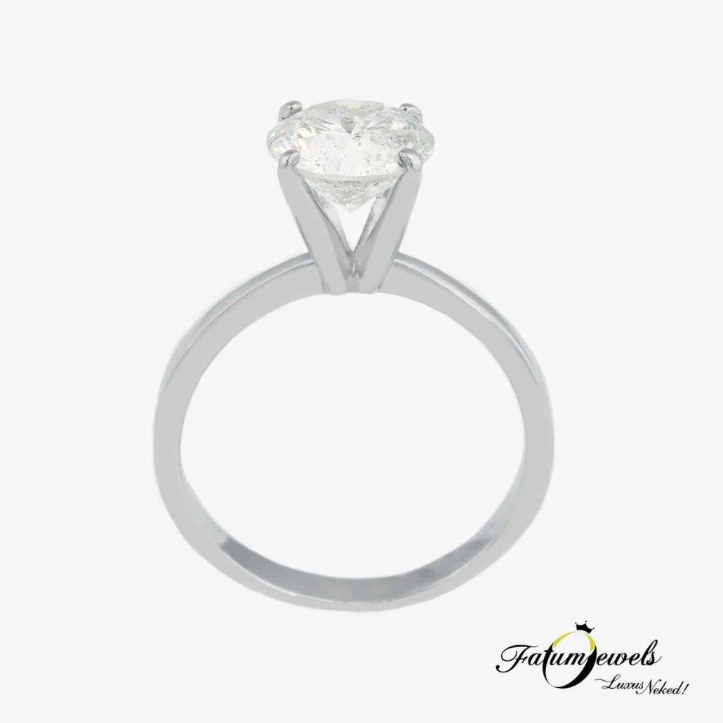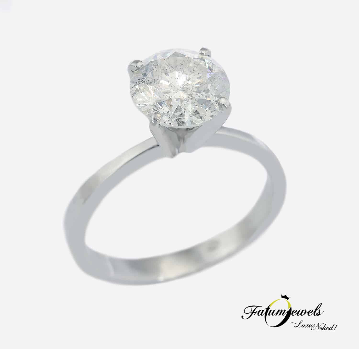 Hatalmas briliáns gyémánt a platina gyűrűn. Nem erre vágyik minden lány, amikor elképzeli a lánykérést? Ez a Fatumjewels platina szoliter gyémántgyűrű valódi mesebeli eljegyzési gyűrű, ami egészen biztosan pozitív választ eredményez a nagy napon. Hagyományos eljegyzési gyűrű a Fatumjewels Galériától különleges alapanyagból, különleges gyémánt drágakővel.