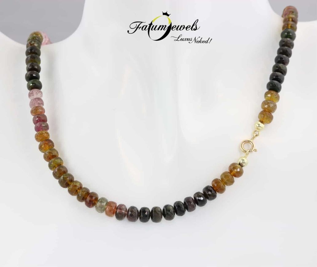 A drágaköveknek nemcsak a szépségét, de a hatását is szeretnéd élvezni? Akkor ez a multikolor turmalin nyaklánc sárga arany kapoccsal éppen neked készült a Fatumjewels Galériában. Tudtad, hogy a turmalin kiegyensúlyozottságot és életörömöt gerjeszt? Ezen kívül elősegíti a belső békét. Az sem utolsó szempont, hogy csodálatosan szép.