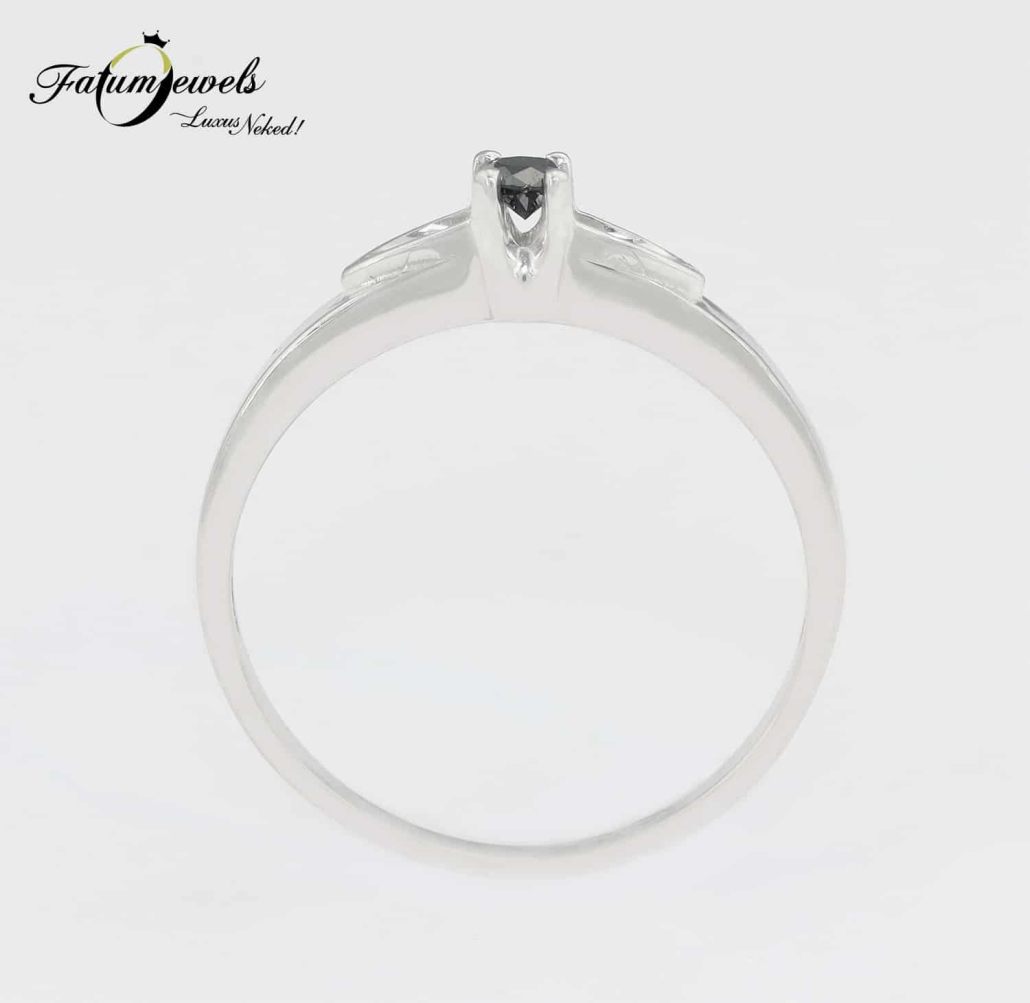 Különleges fehérarany monokróm eljegyzési gyűrű egy briliáns fekete gyémánt díszítéssel. A fekete gyémánt egy kis csónak alakú vájatban kapott helyet, ami azt mutatja, révbe értél. A titokzatos fekete gyémánt rendkívülivé teszi hétköznapjaidat, életre kelti ösztöneidet. Ezt nyújtja számodra a Fatumjewels Galéria.